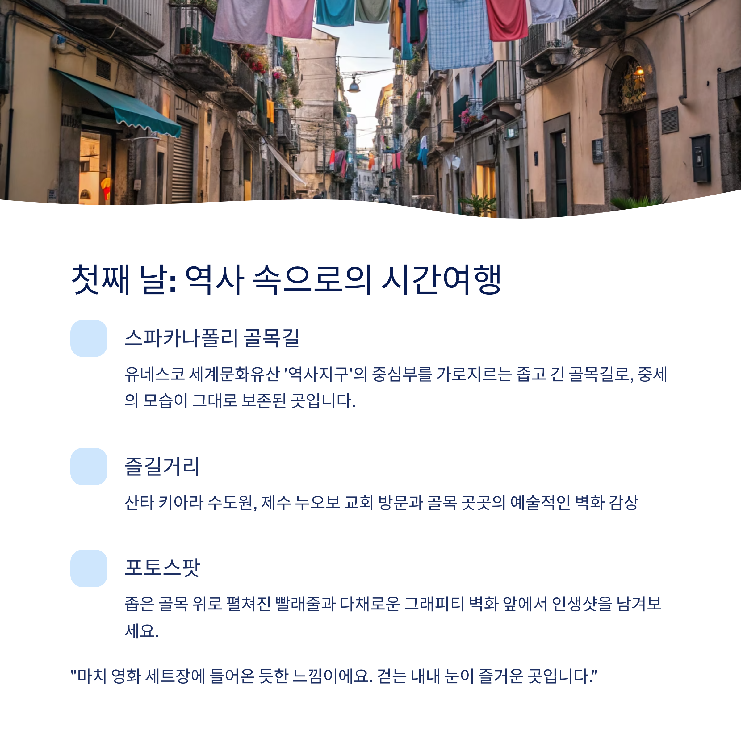 첫째 날: 나폴리 역사 지구와 스파카나폴리 거리 탐방