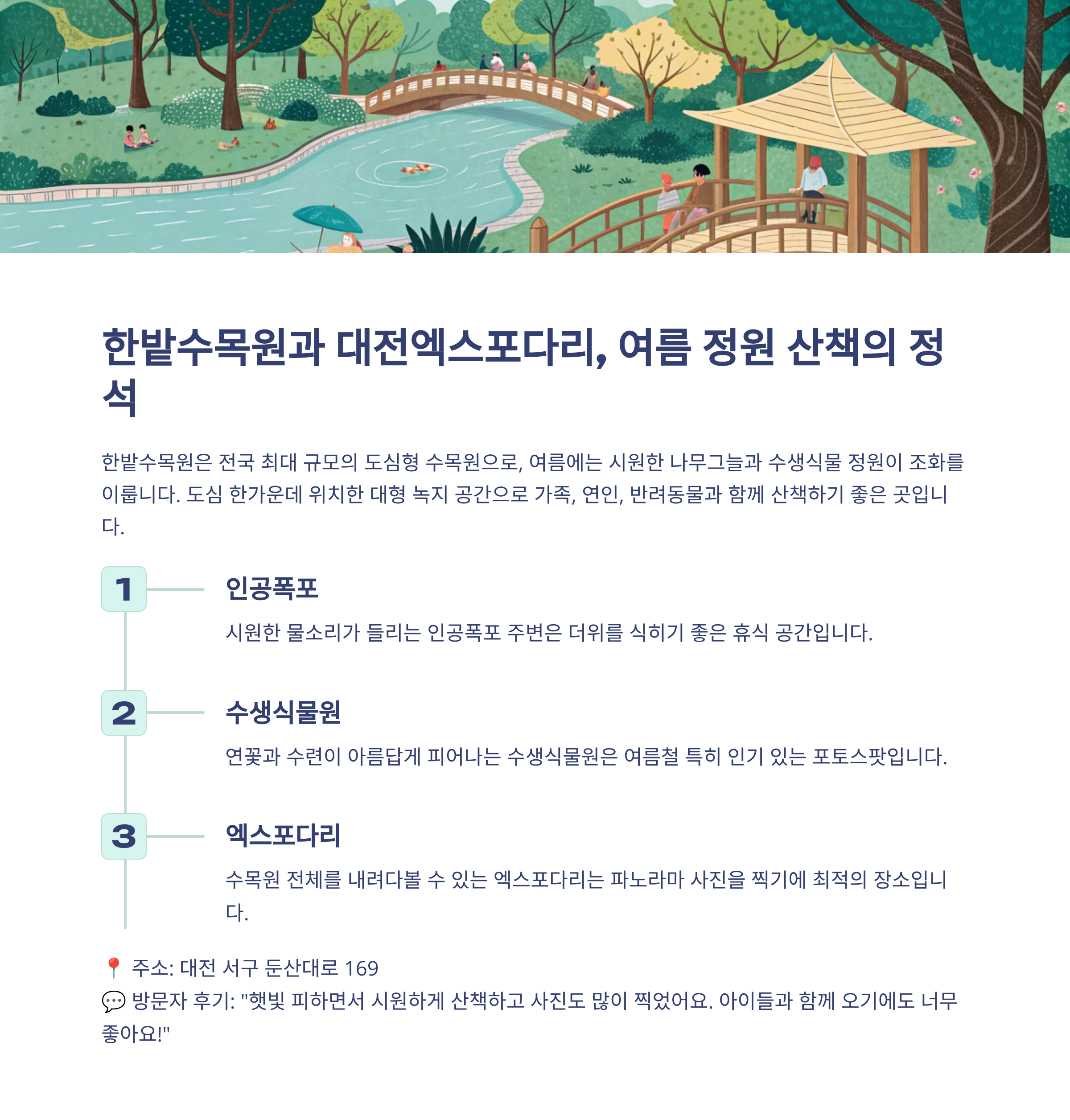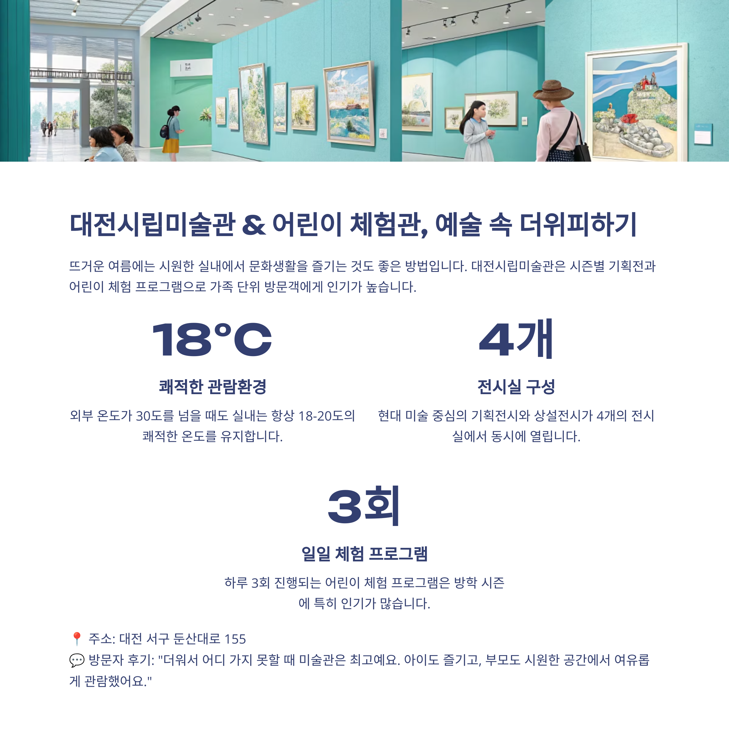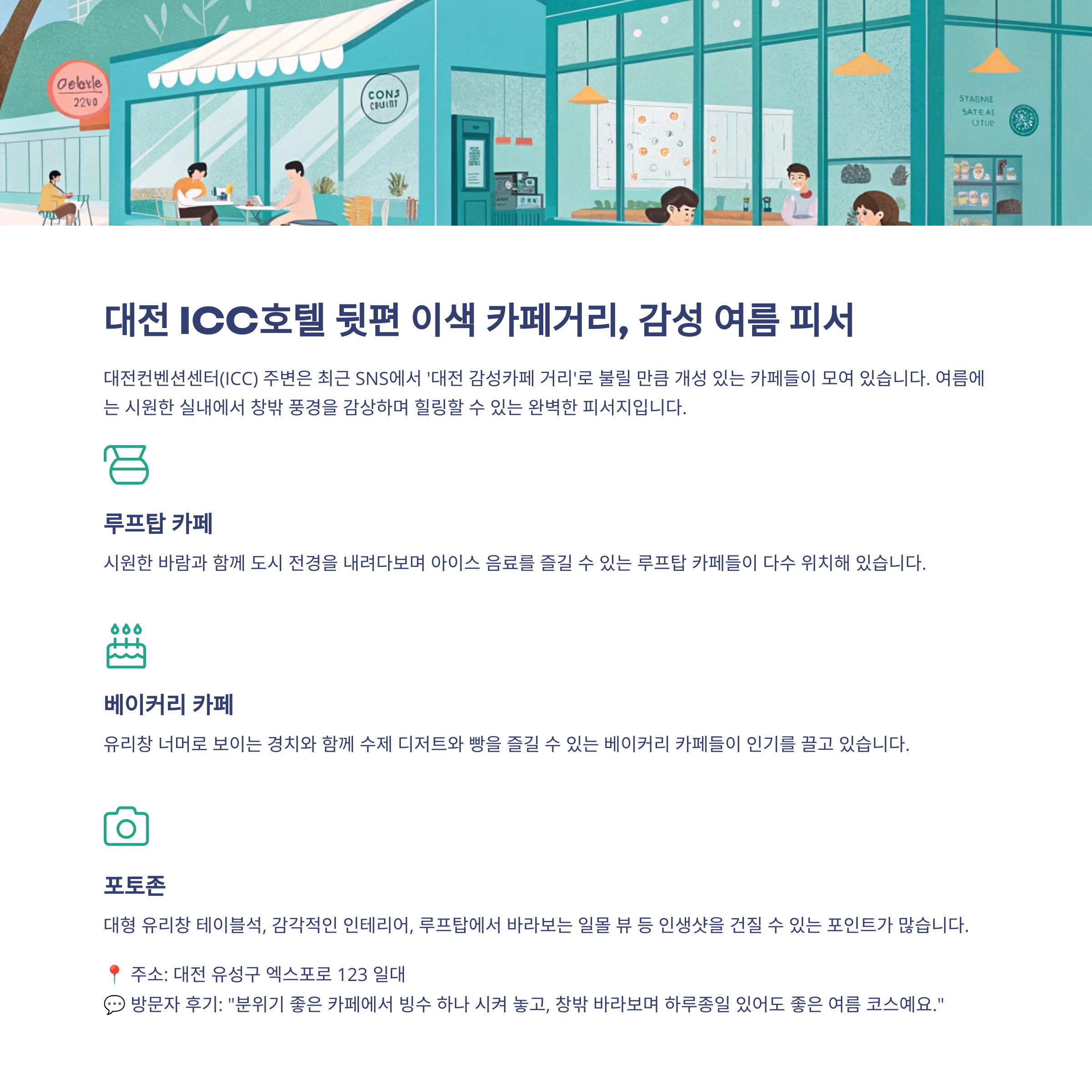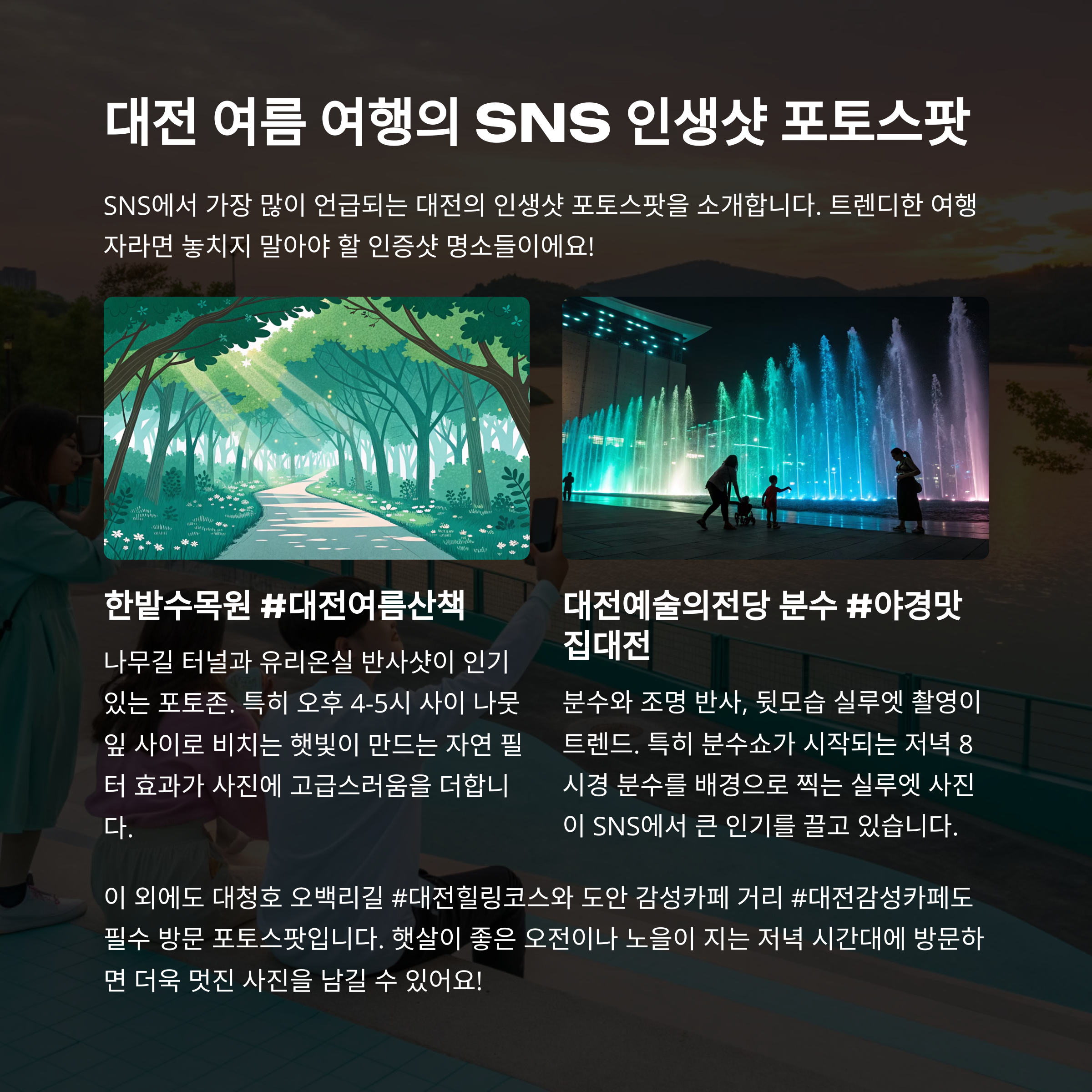 대전은 과거 과학과 교육의 도시라는 인식이 강했지만, 최근에는 젊은 감성과 자연이 어우러진 감각적인 핫플 도시로 부상하고 있다. SNS를 중심으로 대전의 이색 카페, 미술관, 자연 친화적 여행지들이 급부상하고 있으며, 특히 여름 시즌에는 무더위를 피하면서도 힐링할 수 있는 장소들이 다양하게 추천되고 있다. 이번 글에서는 2025년 기준 최신 자료와 실시간 후기, SNS 트렌드를 바탕으로 대전의 핫플레이스를 중심으로 한 여름 여행 코스를 소개한다.