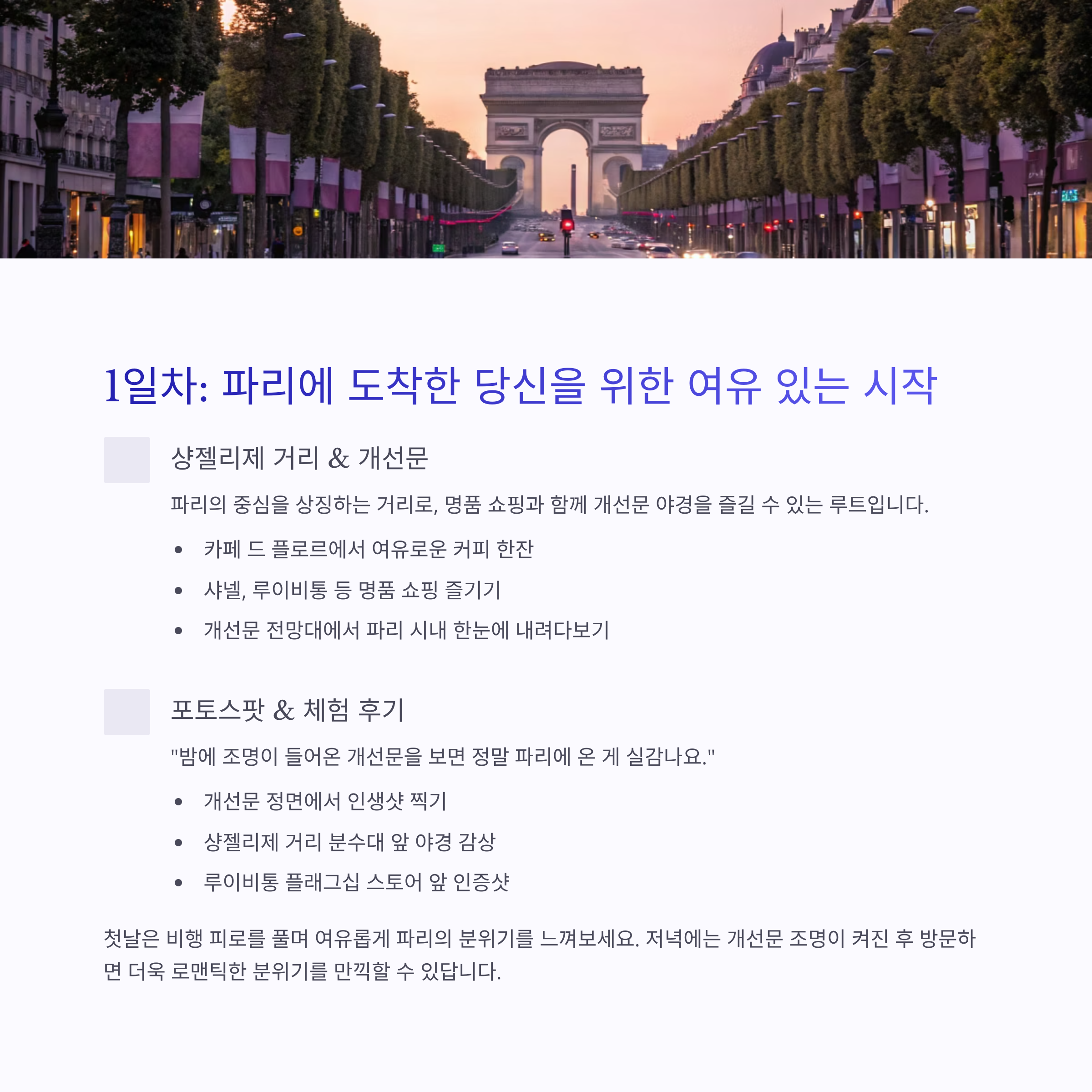 1일차: 파리에 도착한 당신을 위한 여유 있는 시작