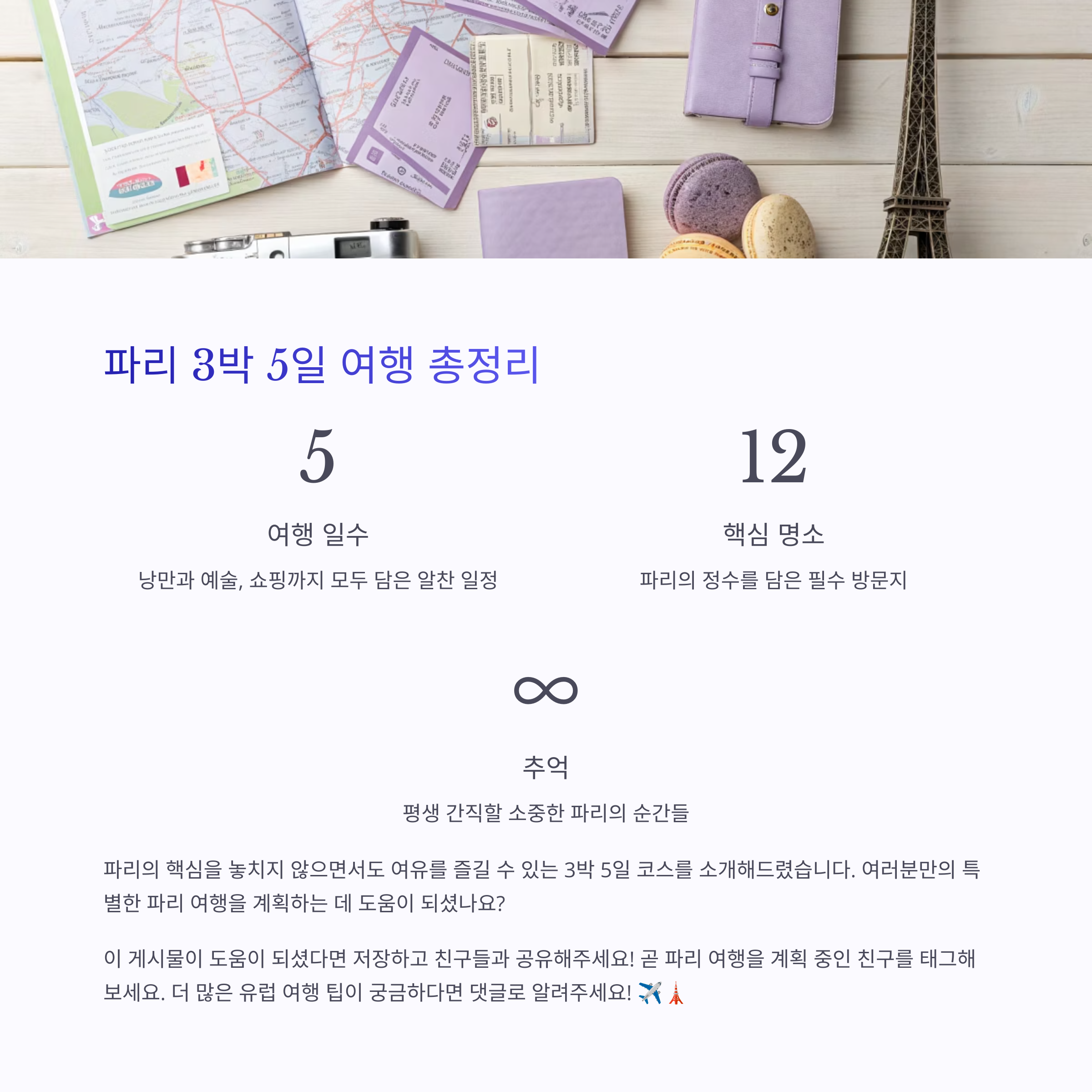 맺음말: 3박 5일 파리 자유여행 요약 일정표