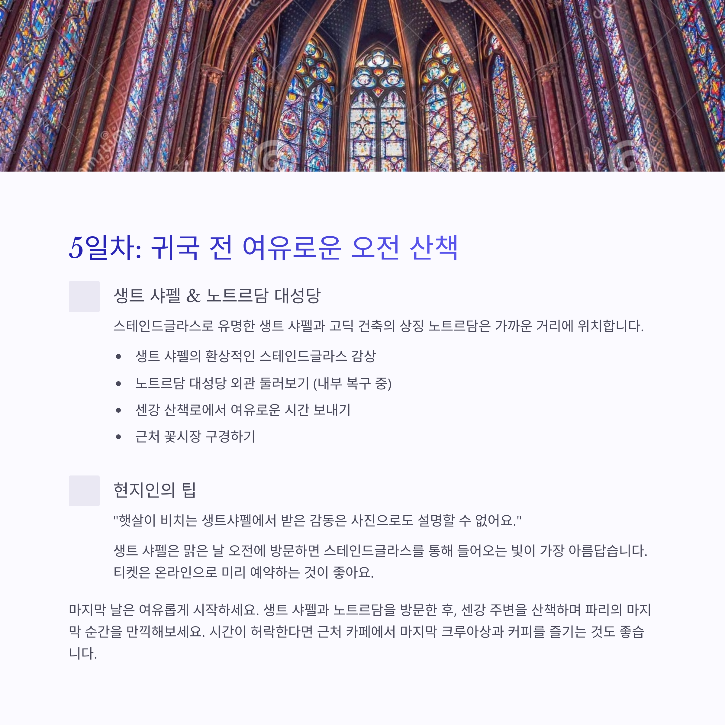 "햇살이 비치는 생트샤펠에서 받은 감동은 사진으로도 설명할 수 없어요."