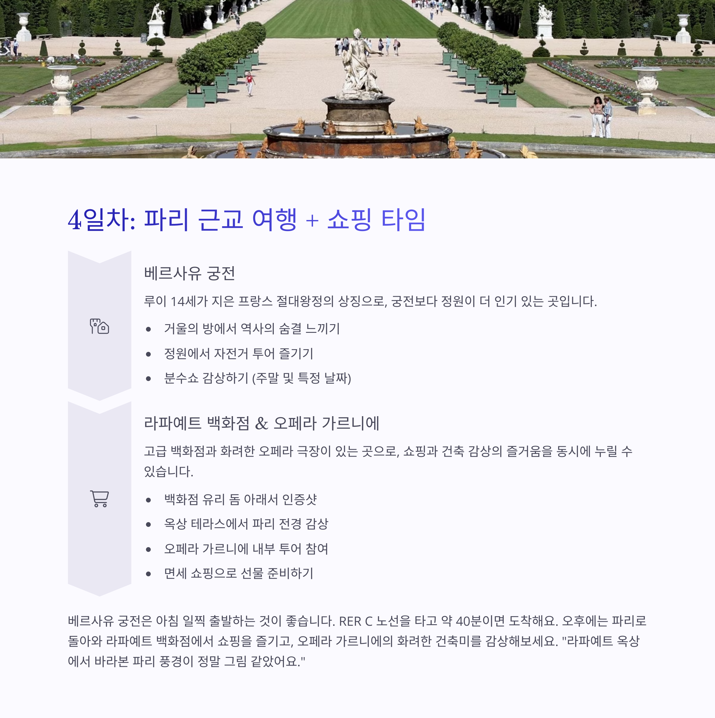 분수쇼 감상, 자전거 투어, 트리아농 관람포토스팟