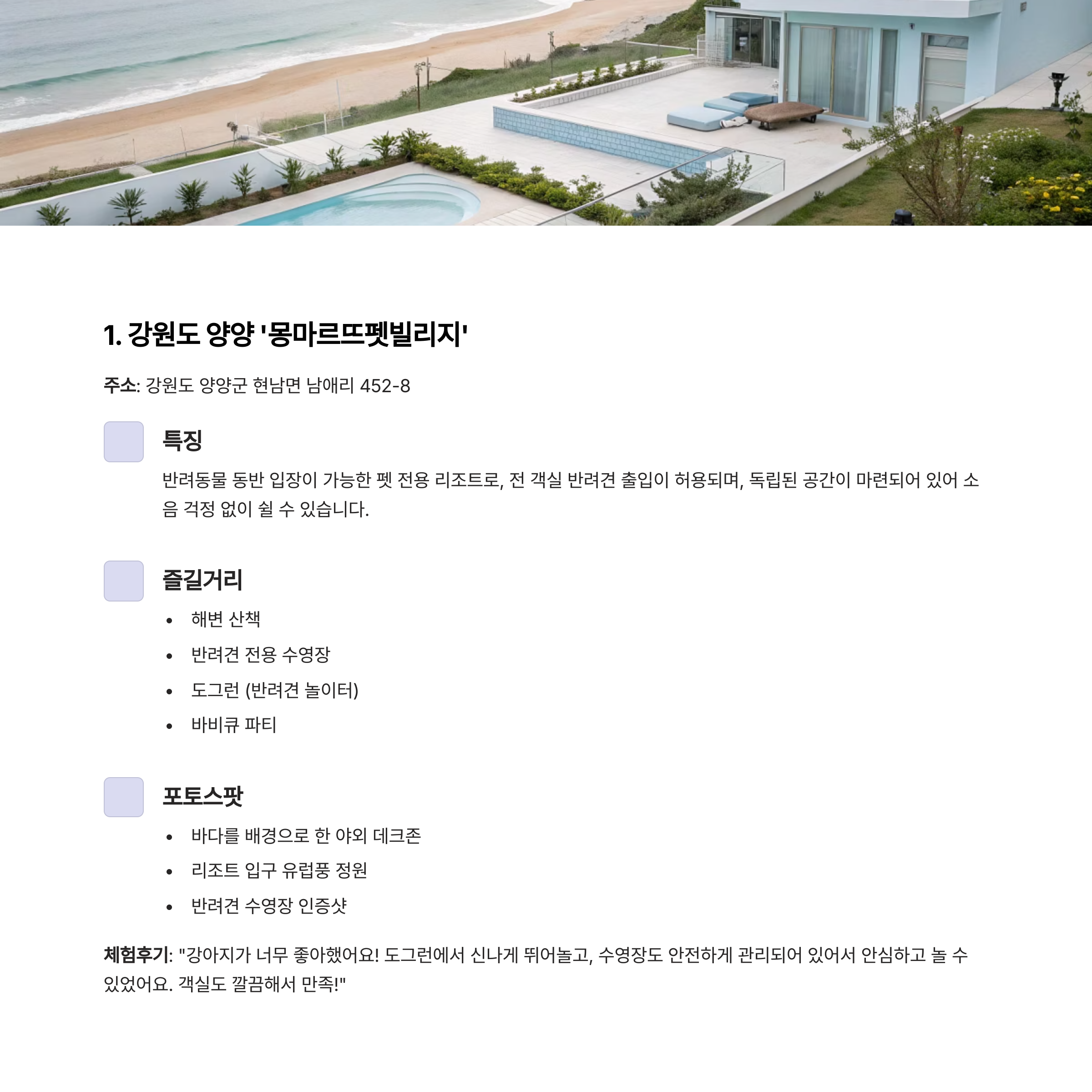 1. 강원도 양양 ‘몽마르뜨펫빌리지’