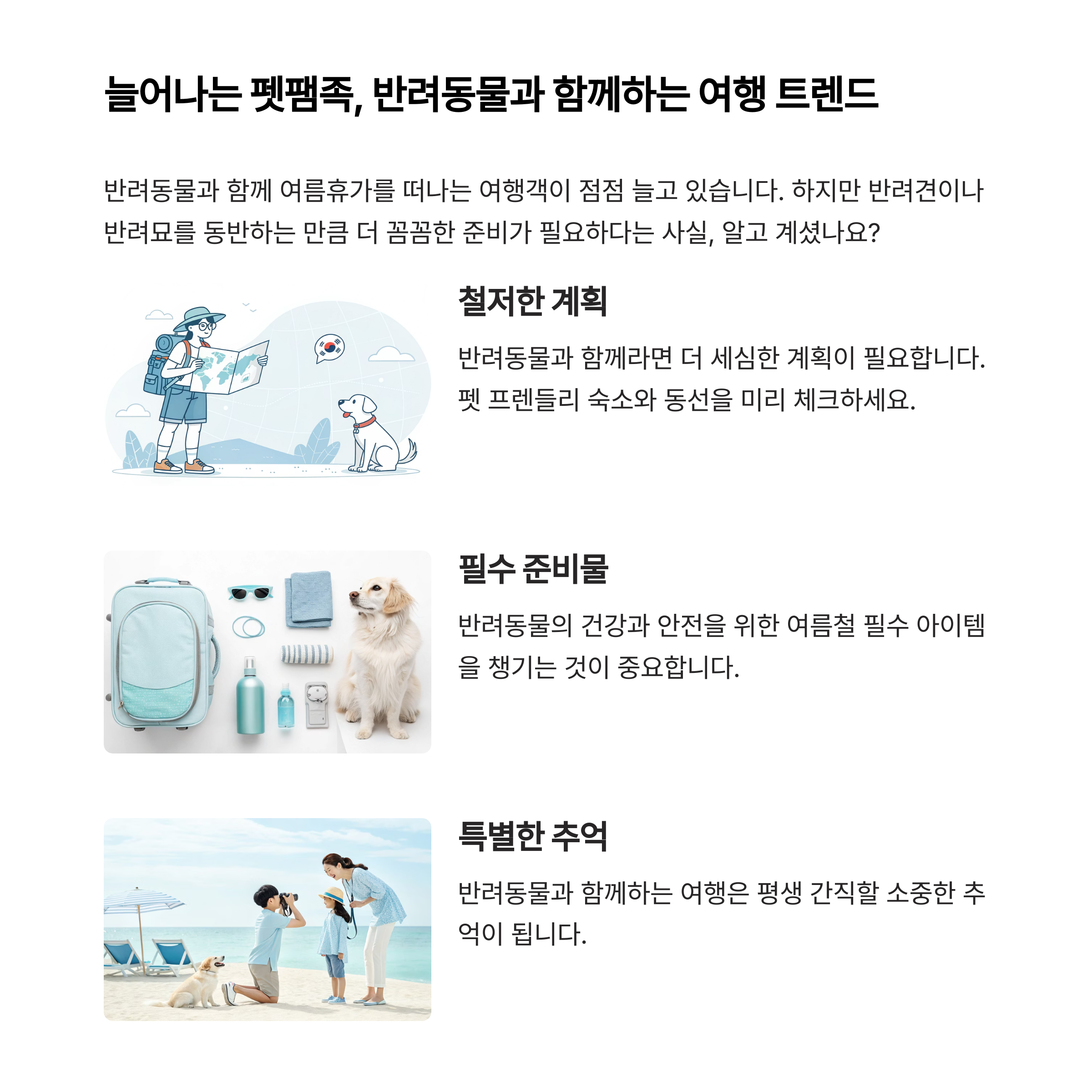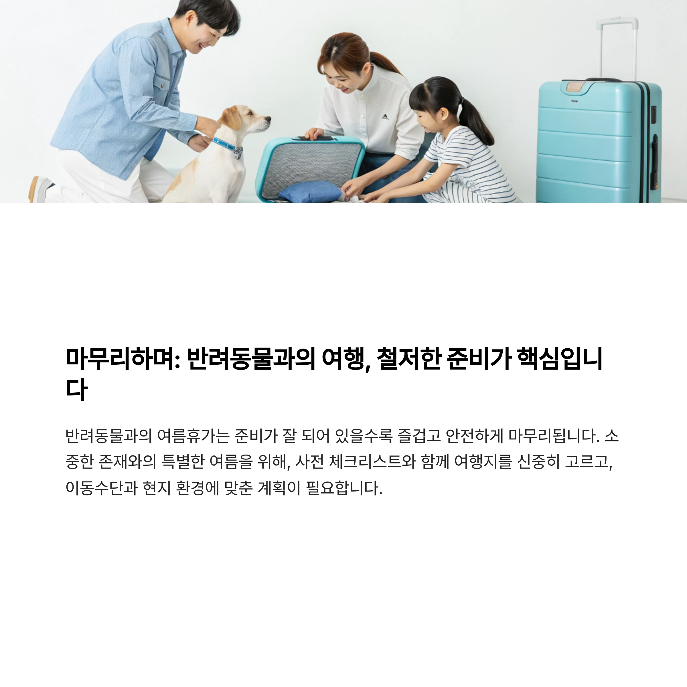 반려동물과의 여름휴가는 준비가 잘 되어 있을수록 즐겁고 안전하게 마무리됩니다.