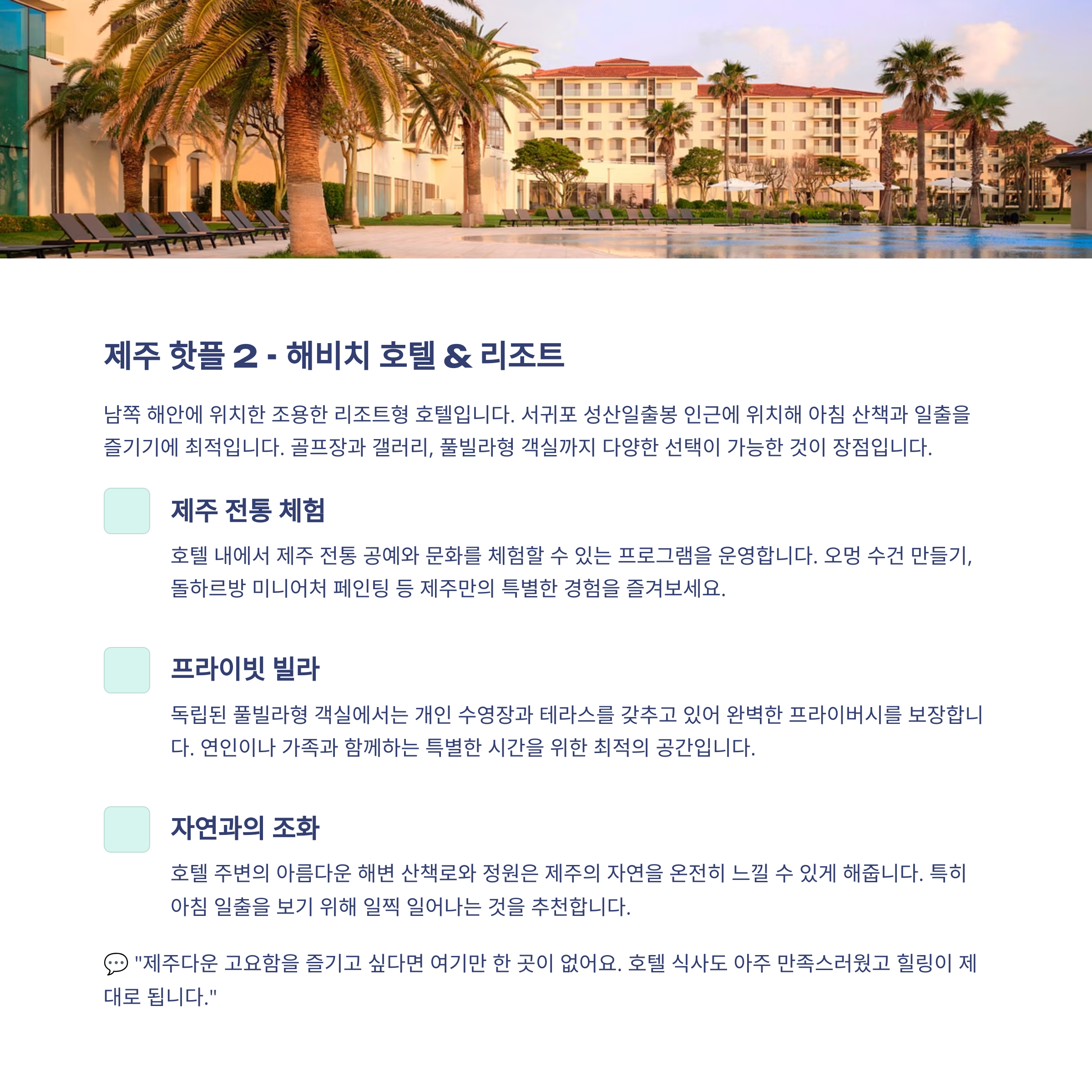 "제주다운 고요함을 즐기고 싶다면 여기만 한 곳이 없어요.