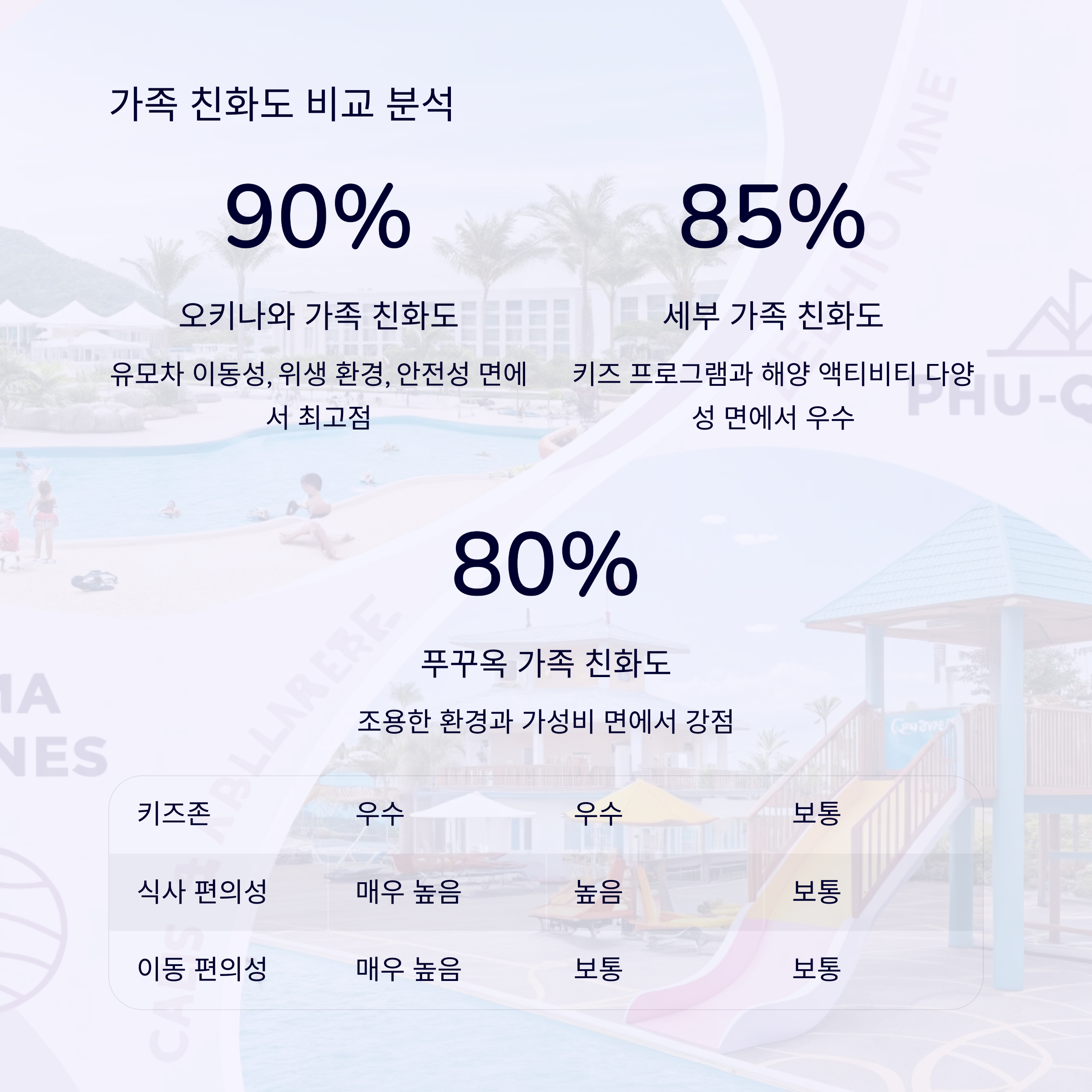 필리핀 세부, 베트남 푸꾸옥은 모두 매력적인 가족 여행지로 떠오르고 있는데요.