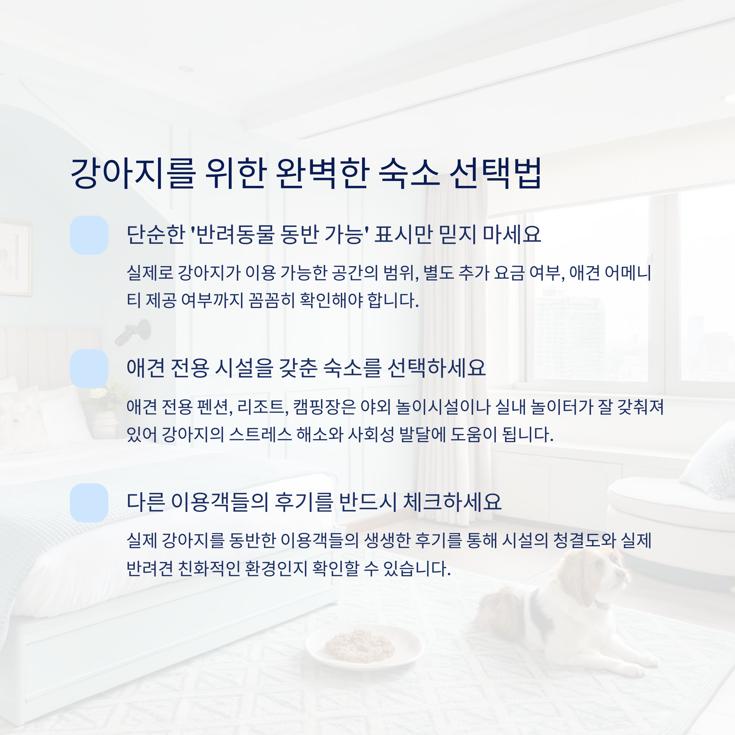 '반려동물 동반 가능' 문구만 확인하는 것에서 그치면 안 됩니다.반려견이 이용 가능한 공간,