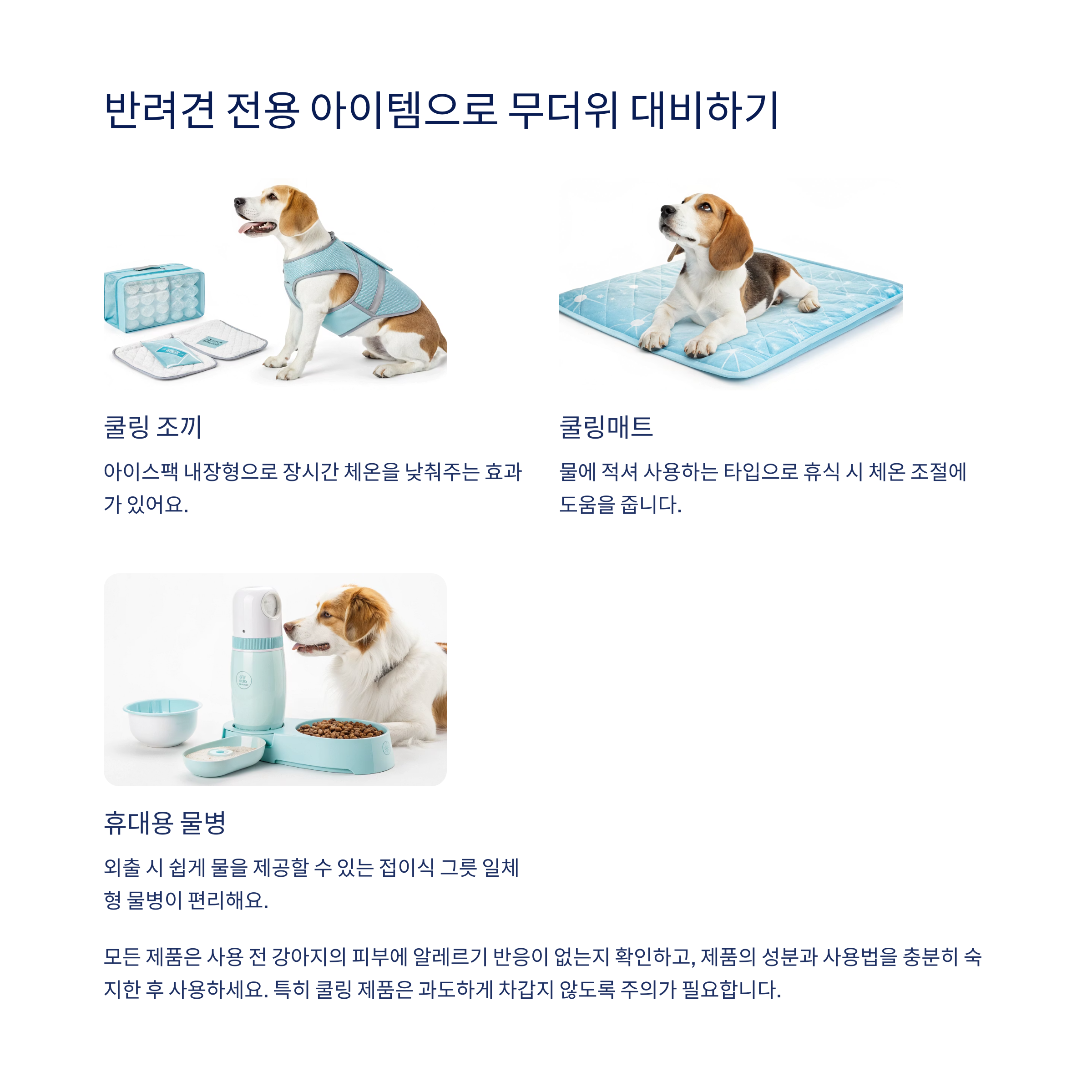 여름철 강아지를 위한 다양한 전용 아이템이 도움이 됩니다.