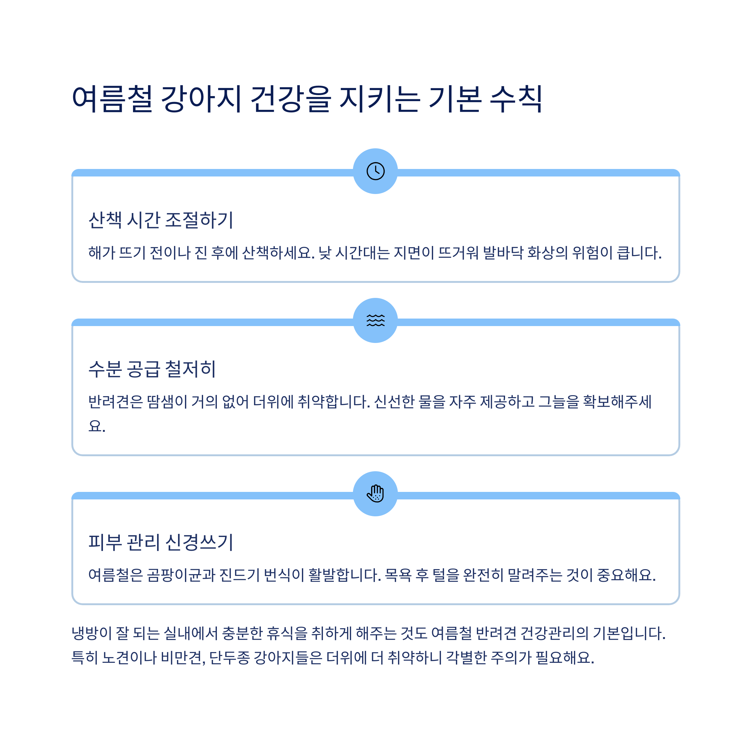 여름에는 온열 질환, 피부병, 탈수 증상이 자주 발생합니다.