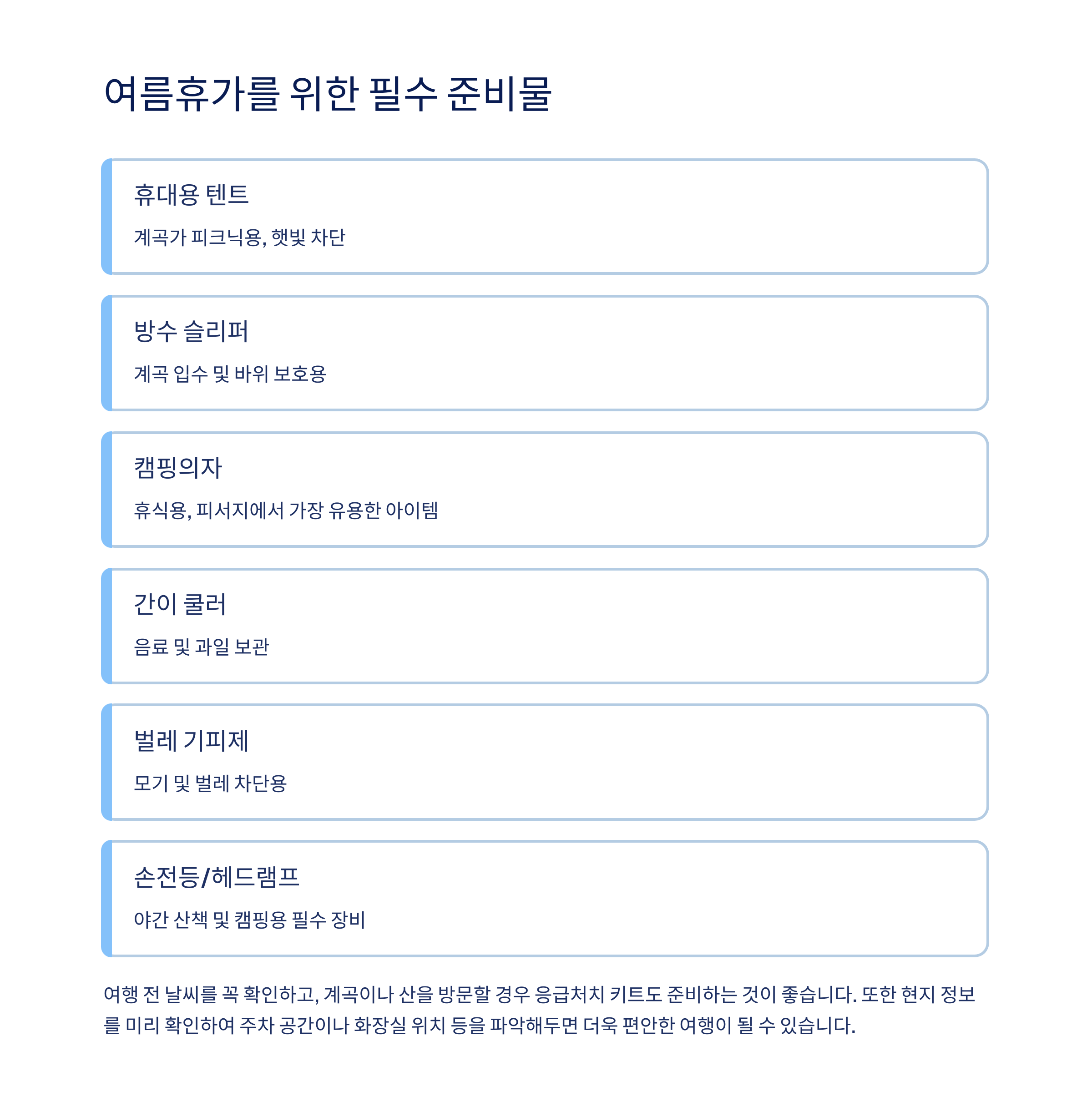 따뜻하게 품어줍니다.다음은 2박 3일 일정 기준으로 짜본 여름 한적한 여행 요약표입니다.