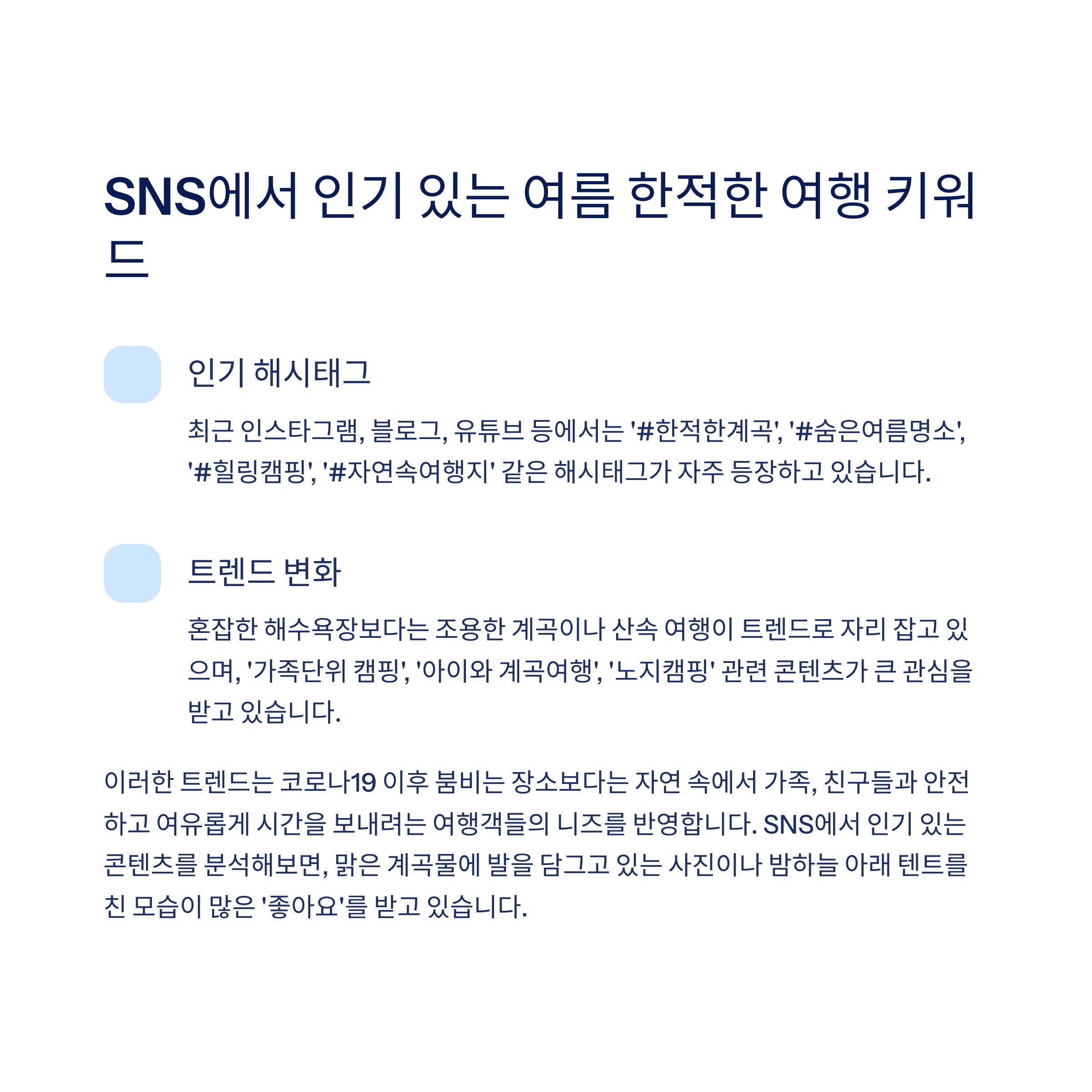 SNS에서 인기 있는 여름 한적한 여행 키워드 분석