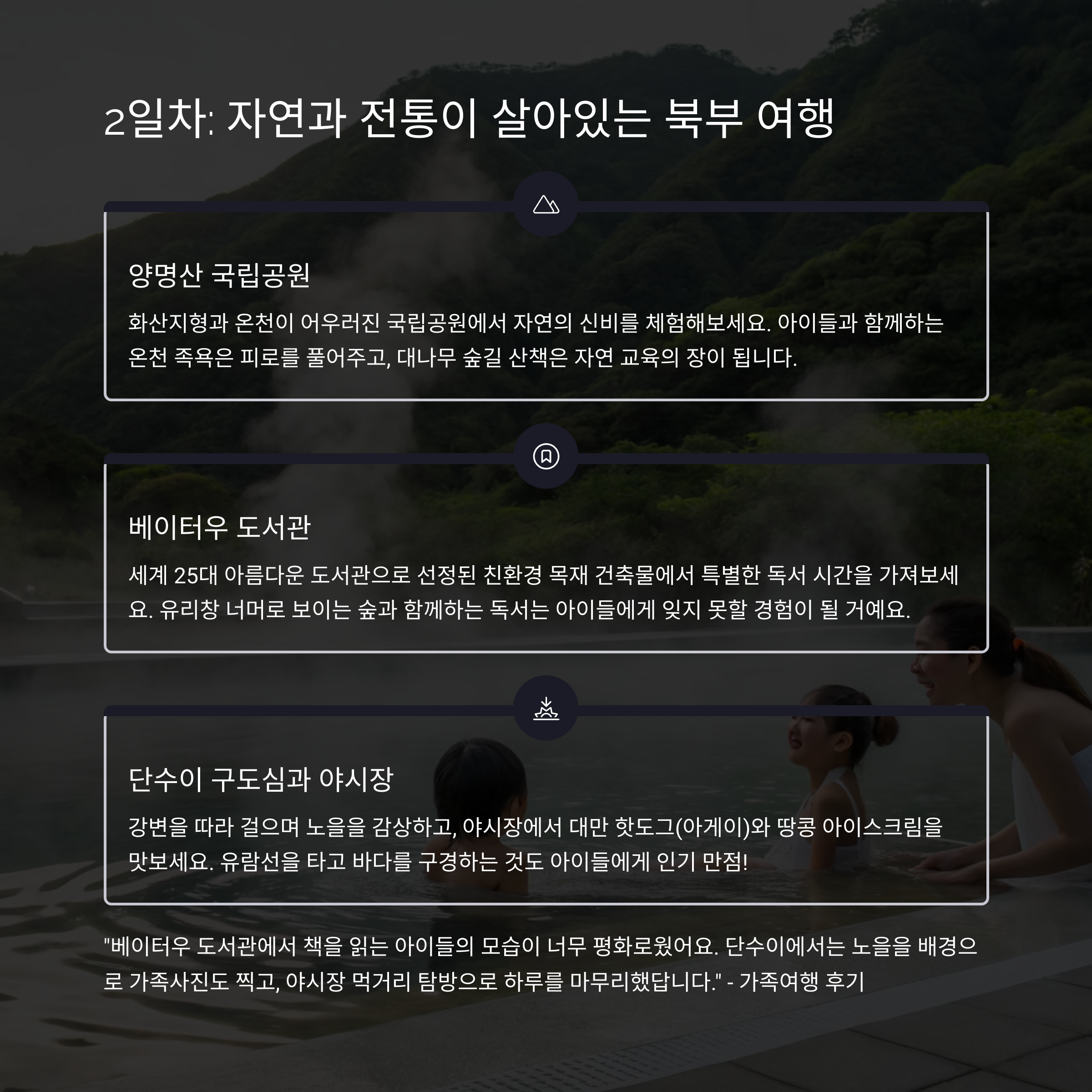 아이도, 부모도 함께 즐길 수 있는 여행지가 분명합니다.