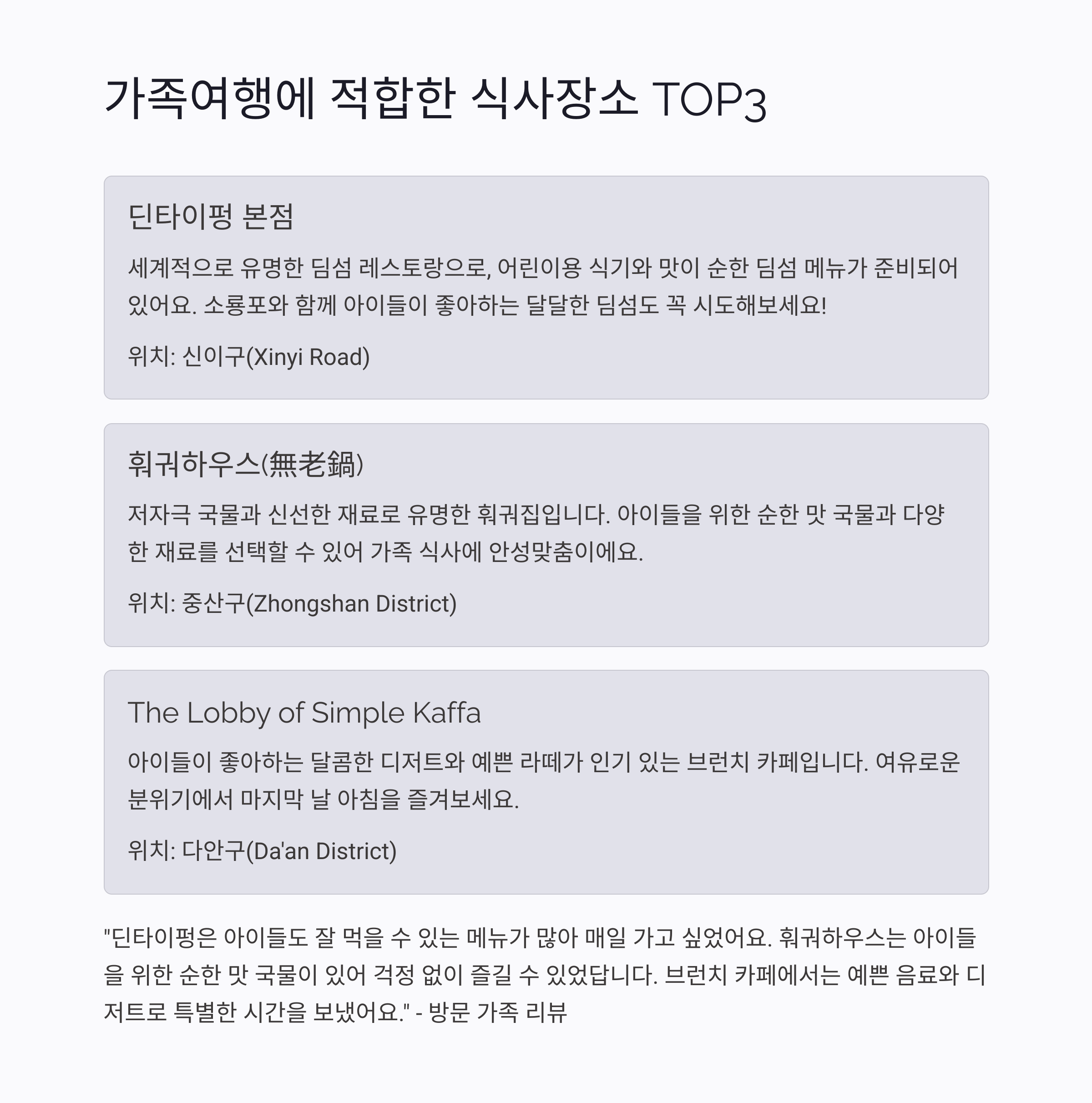 가족여행에 적합한 식사장소 TOP3