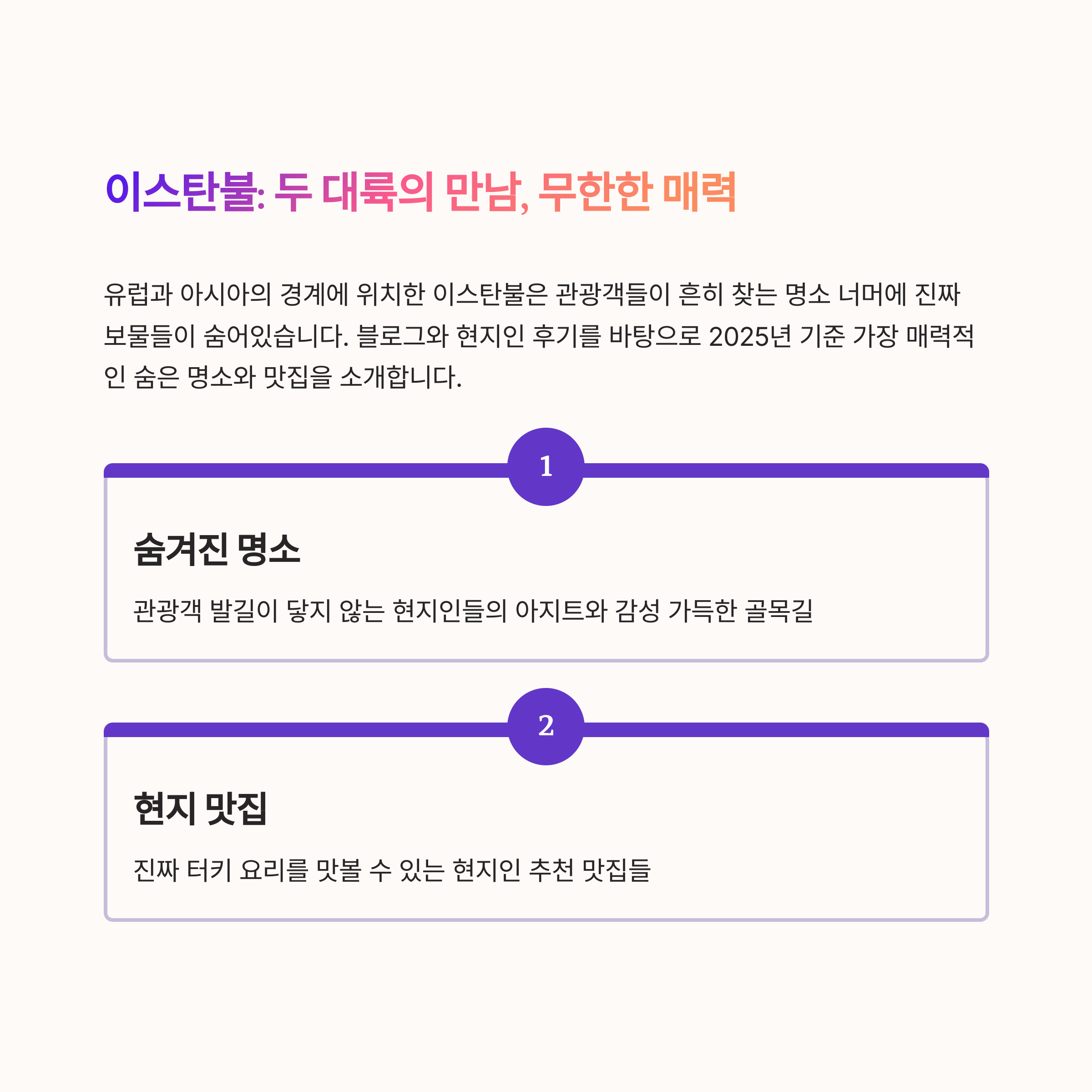 이스탄불 숨겨진 관광명소와 맛집 추천! 현지 감성으로 떠나는 색다른 터키 여행여행 2025. 8. 2. 07:00