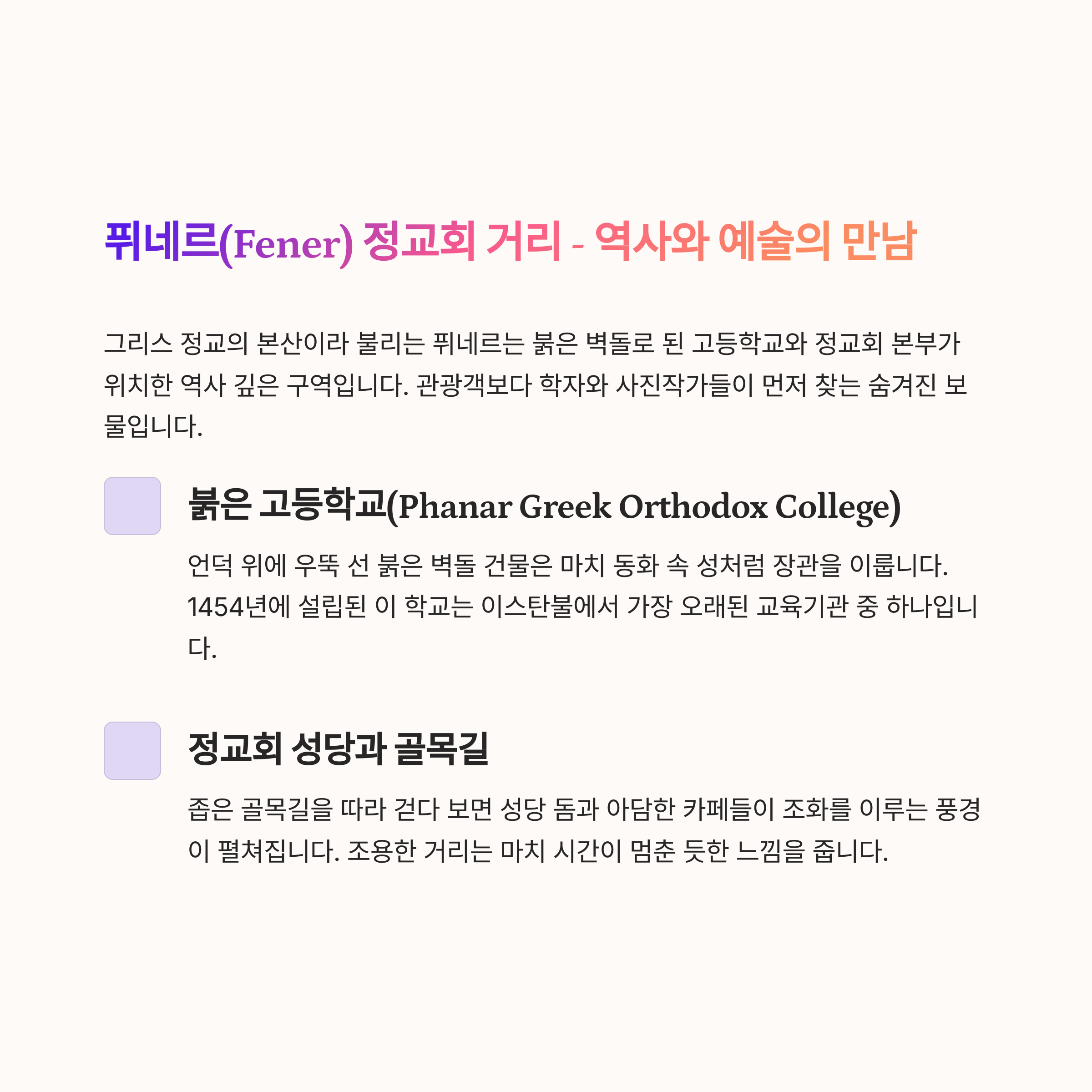 퓌네르(Fener) 정교회 거리 – 종교와 역사, 예술이 만나는 곳