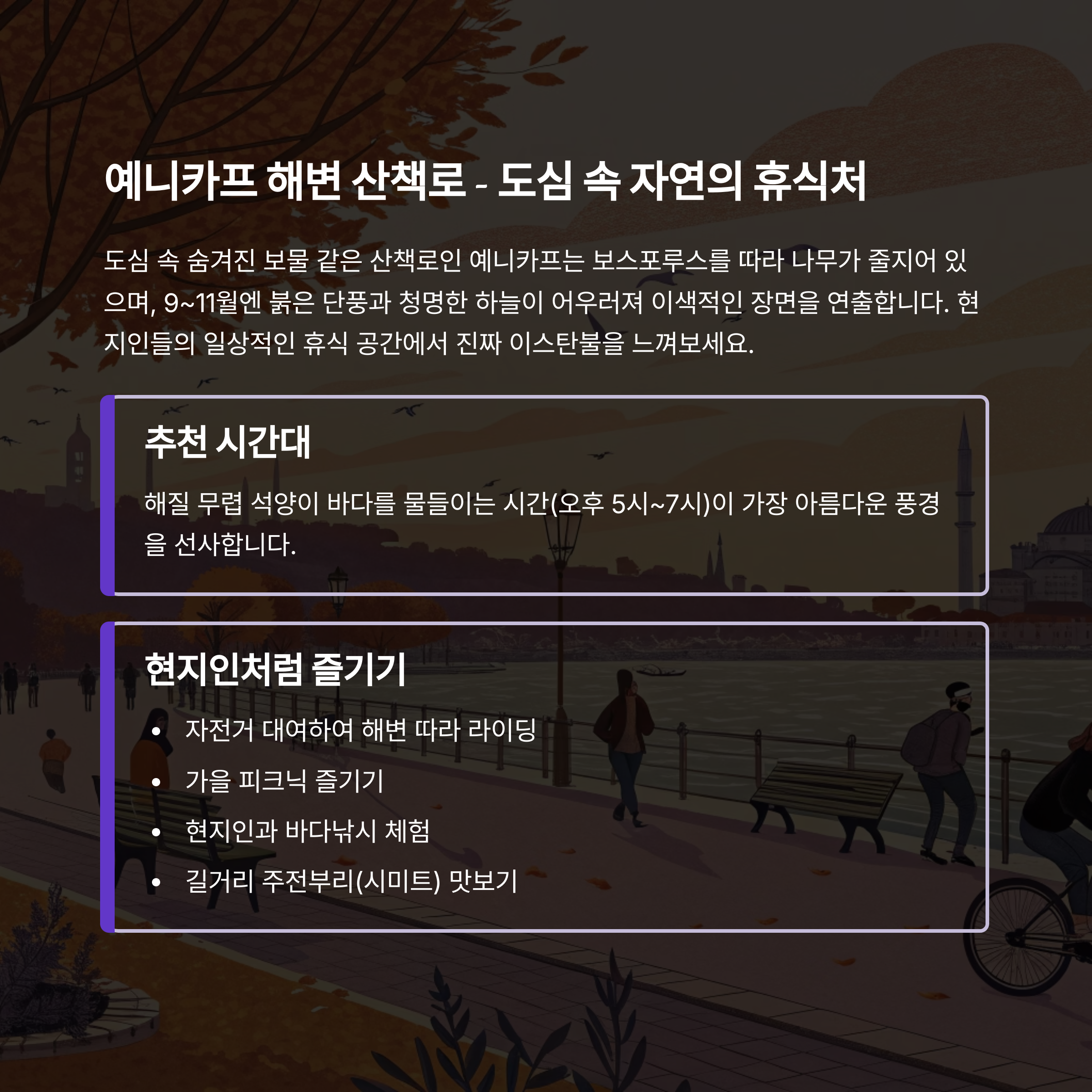 예니카프 해변 산책로(Yenikapı Sahili) – 바다와 단풍이 만나는 이스탄불의 가을