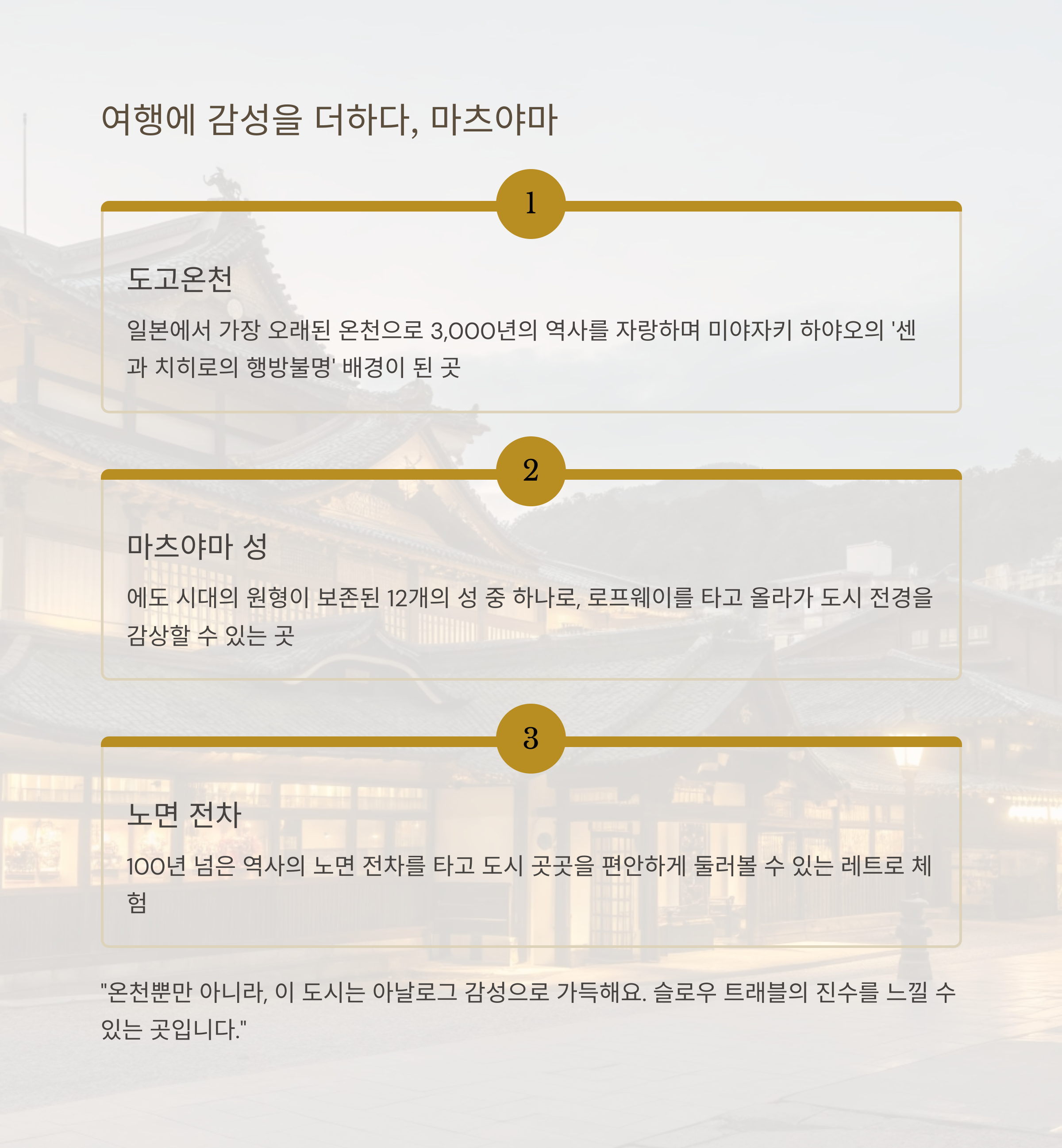 여행에 감성을 더하다, 마츠야마