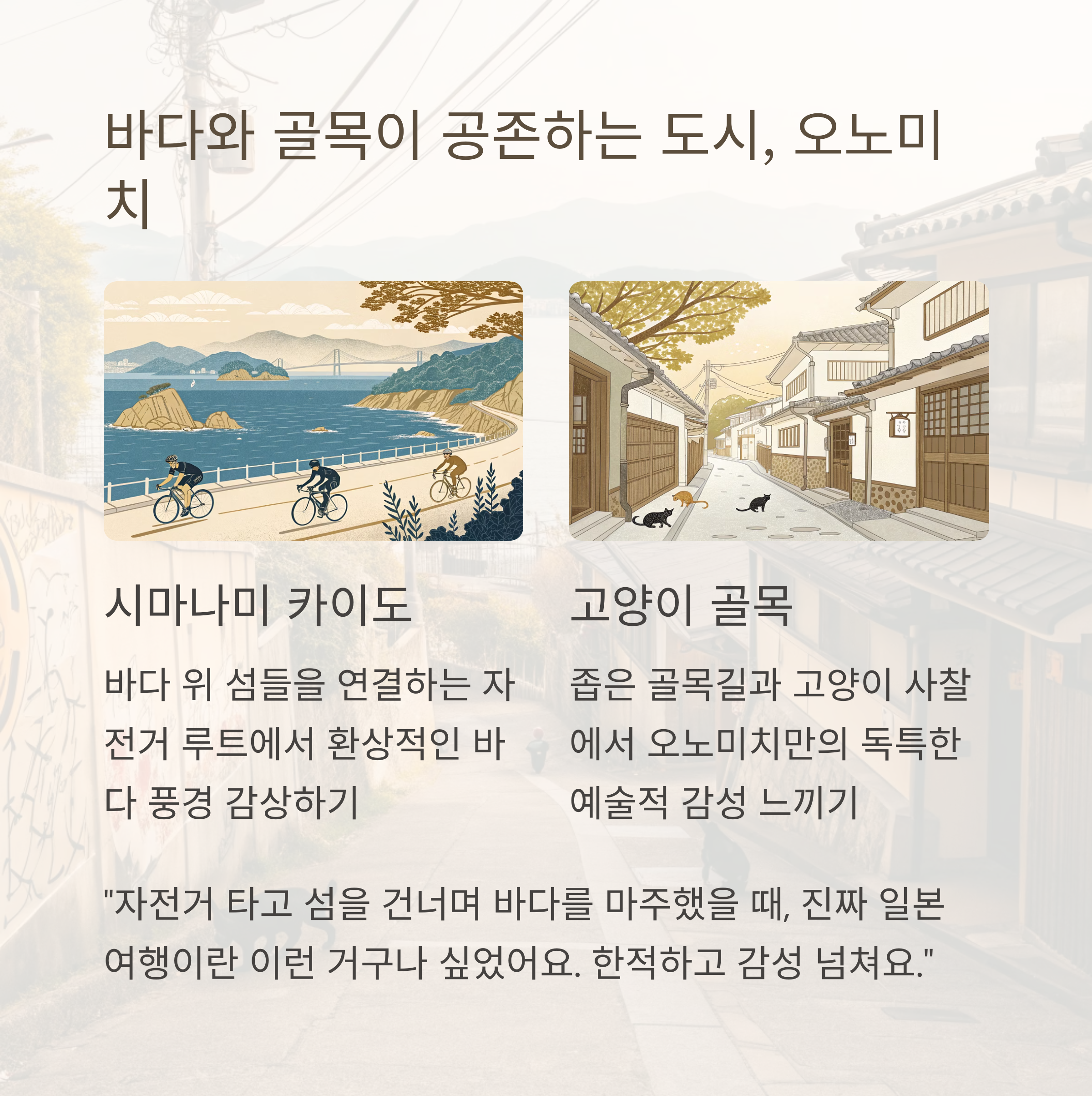센코지에서 바라본 바다, 고양이 골목의 낙서벽, 시마나미 대교체험 후기