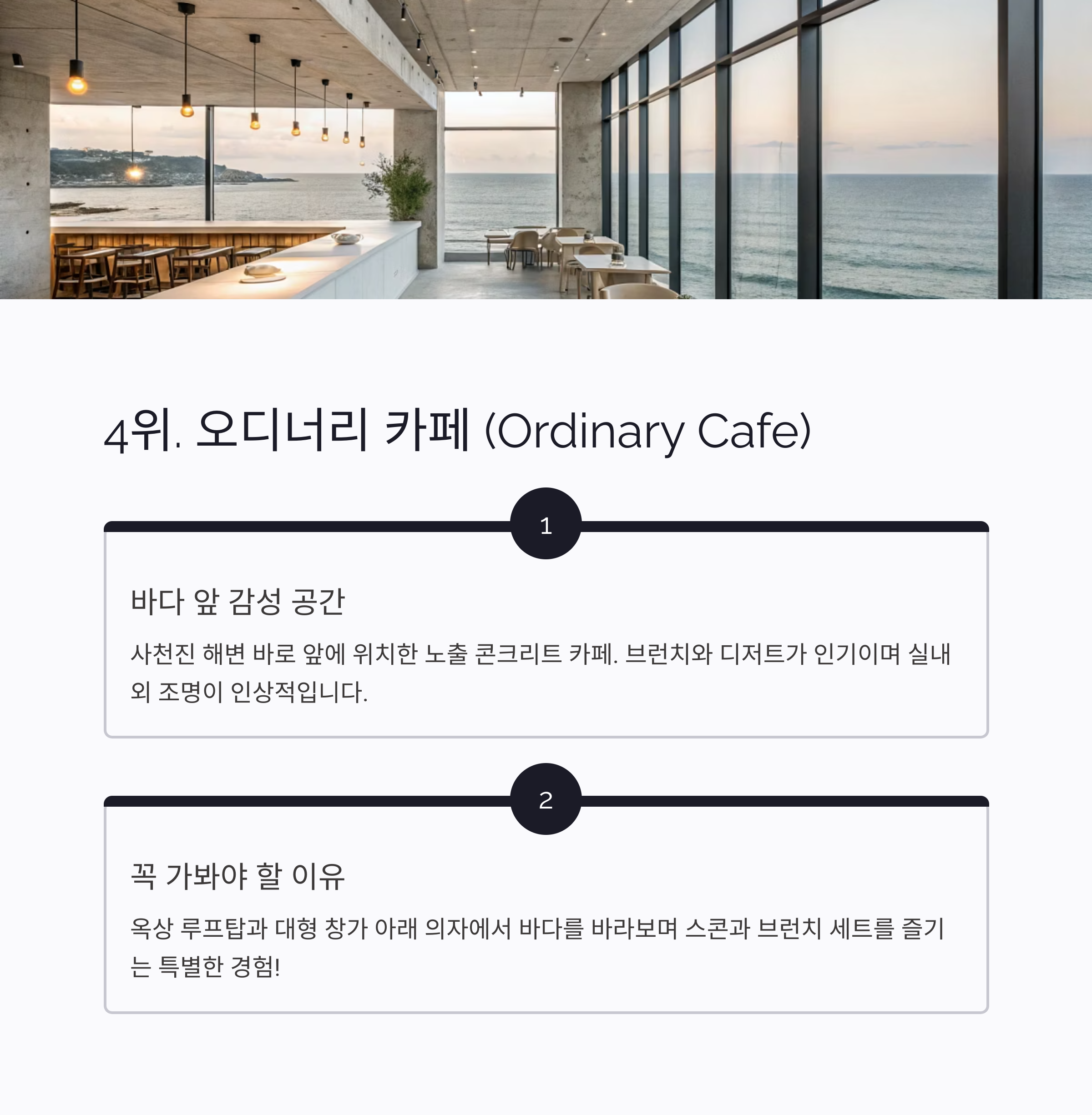 바다 바로 앞에 위치한 감성 노출 콘크리트 카페