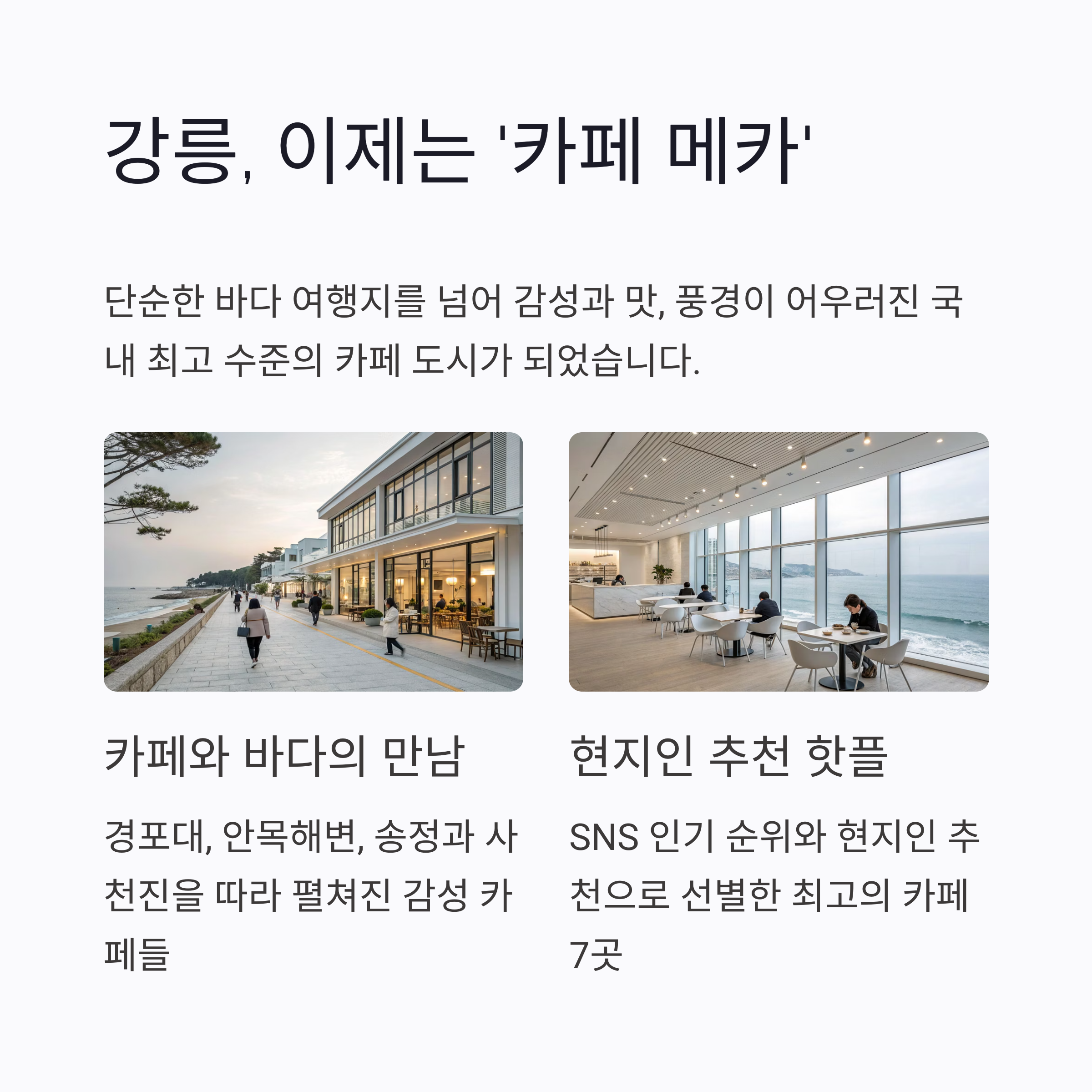 강릉은 이제 단순한 바다 여행지가 아닙니다.