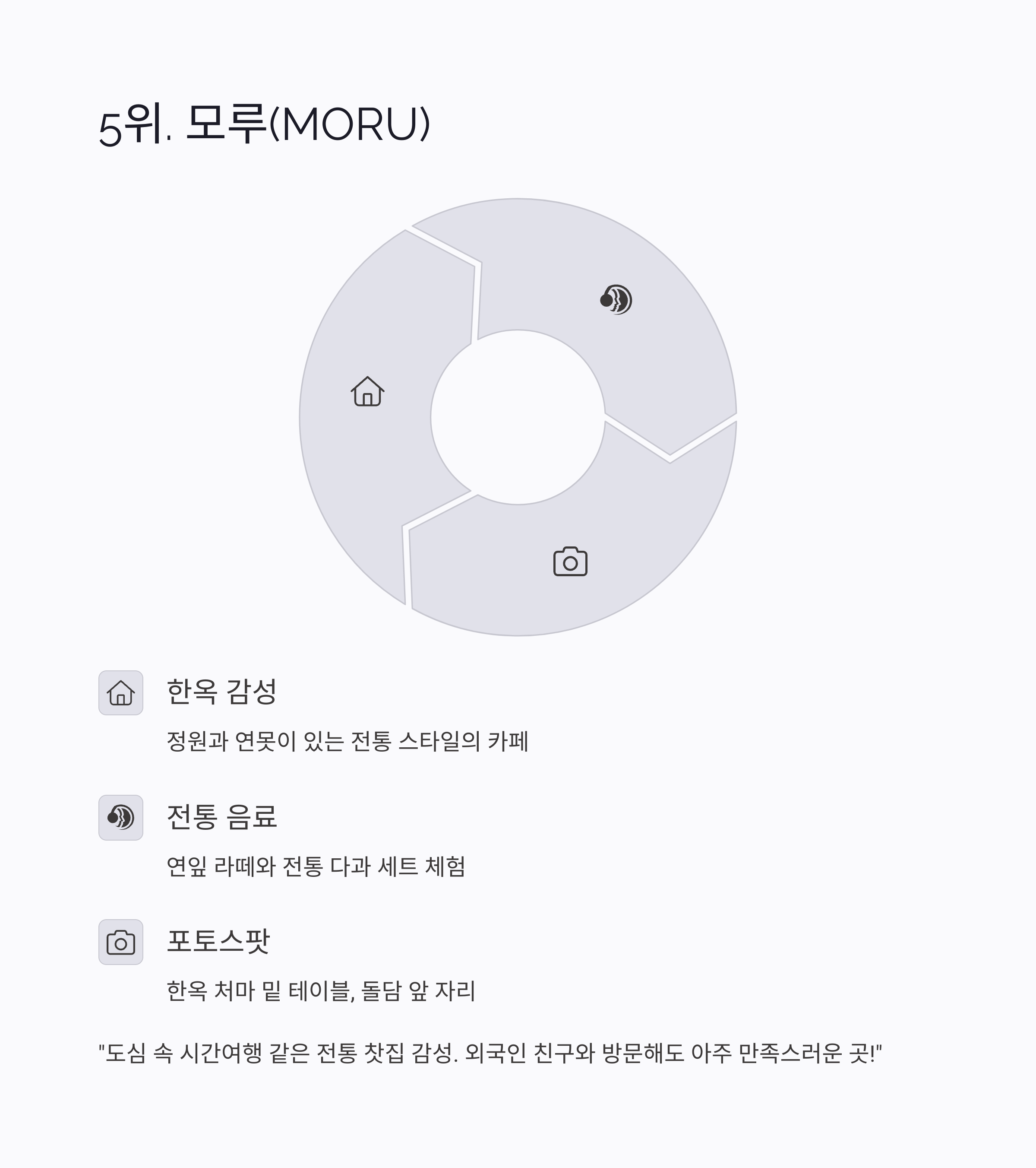 "도심 속의 시간여행 같았어요. 전통 찻집 감성에 반했습니다.