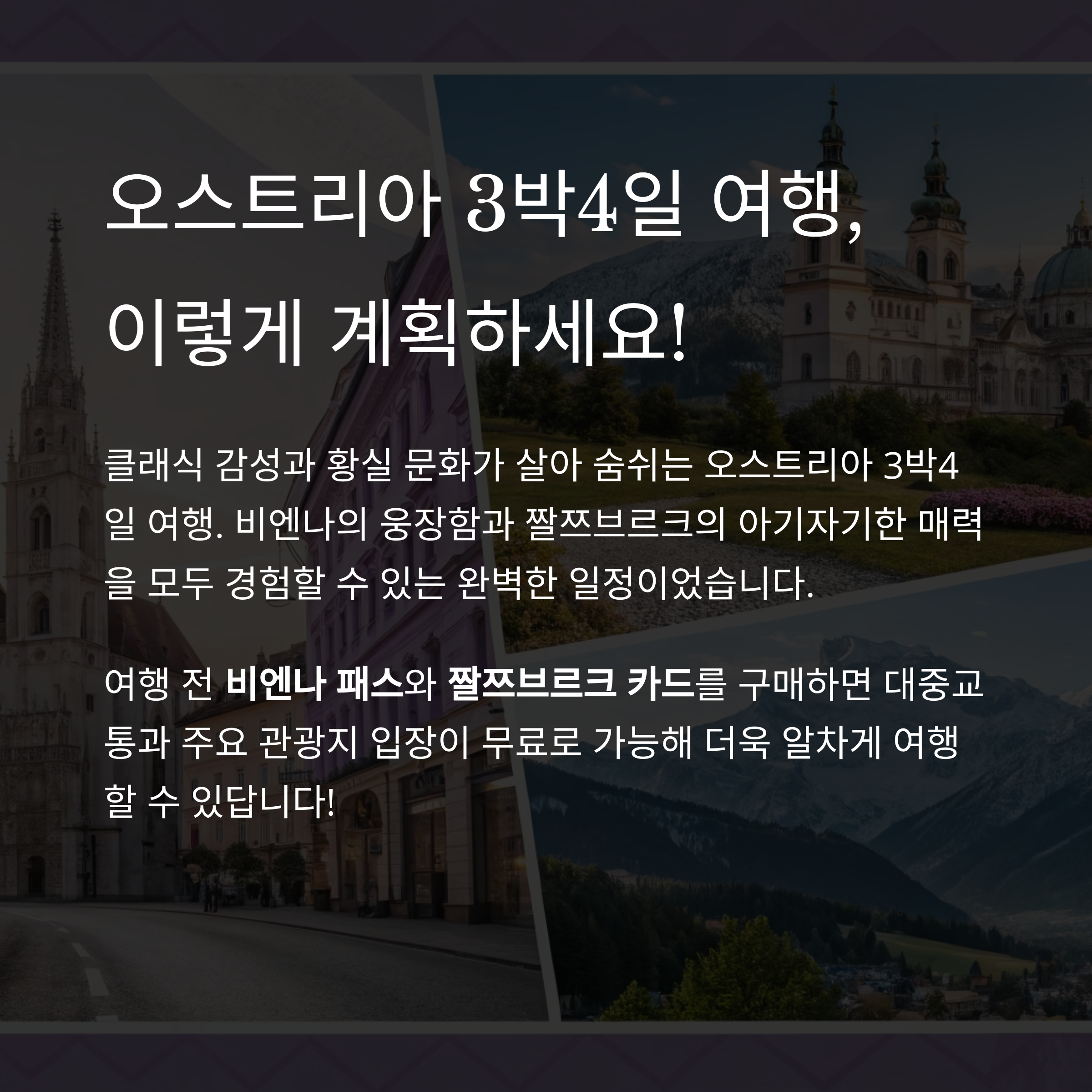 동유럽의 중심 오스트리아 비엔나와 짤쯔브르크 3박4일 여행계획여행 2025. 8. 4. 19:00