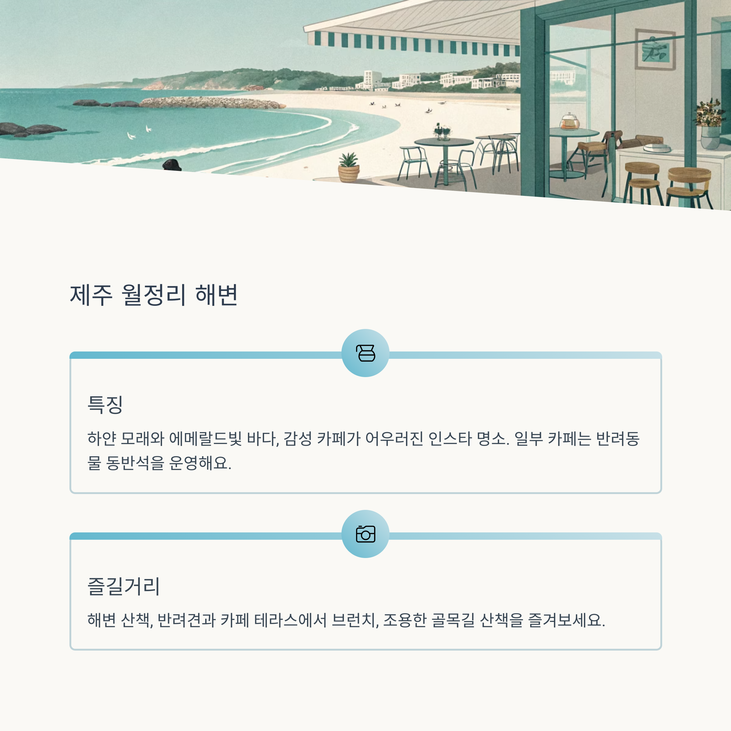 해변 산책, 반려견과 카페 테라스에서 브런치, 조용한 골목길 산책포토스팟