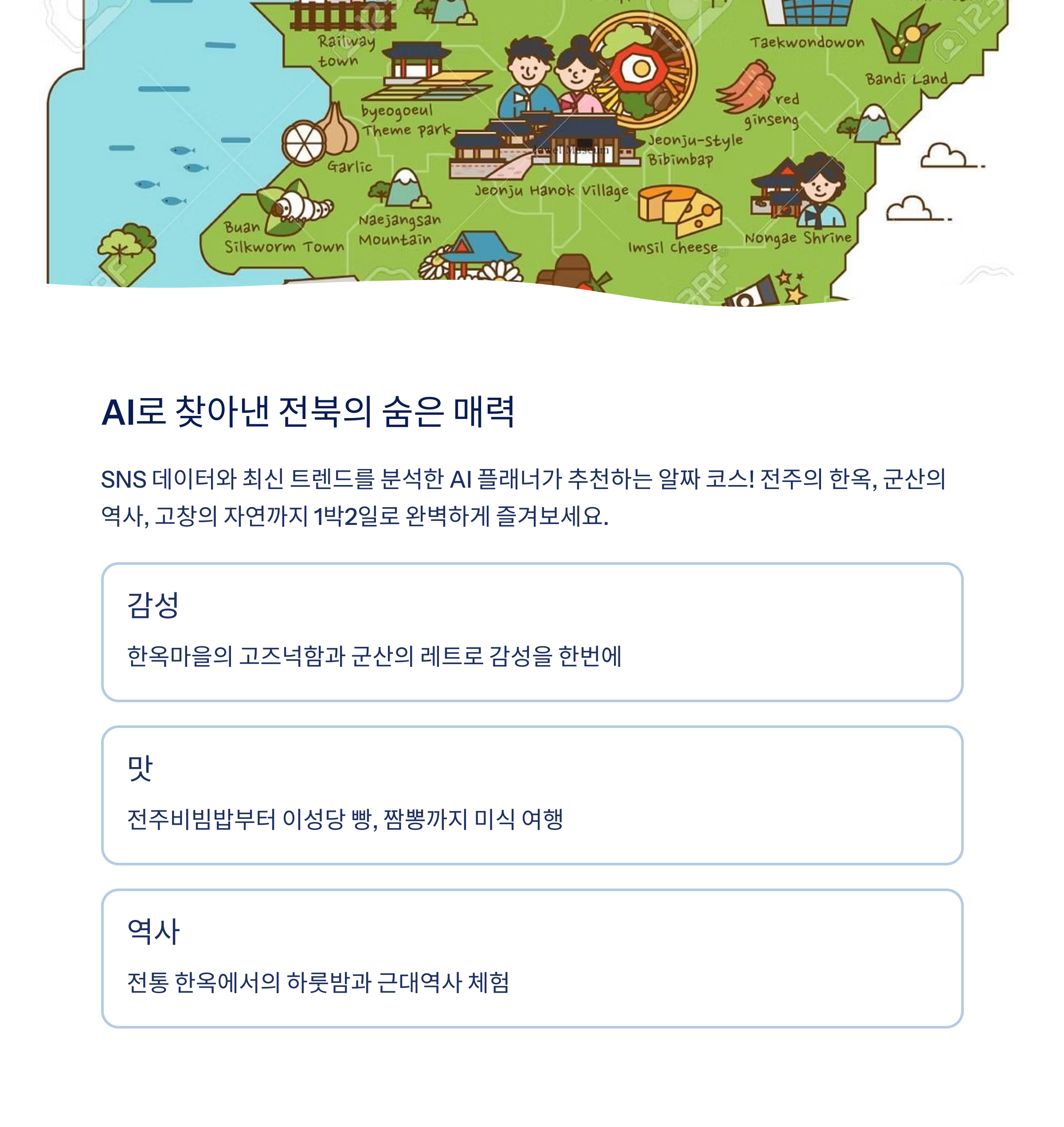 AI플래너로 짠 전북 1박2일 여행일정 추천, SNS 감성 그대로!여행 2025. 8. 8. 14:00