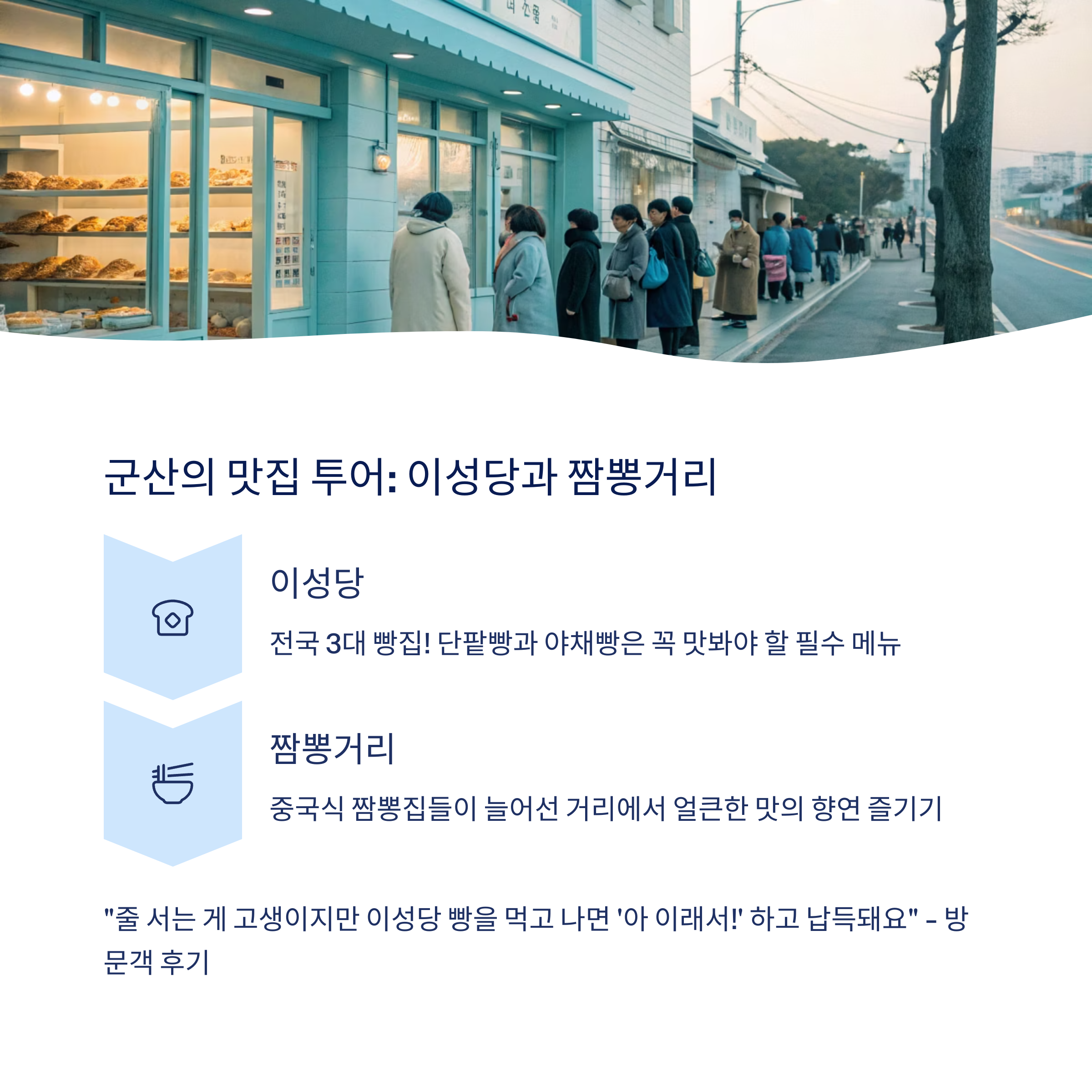 이성당은 전국 3대 빵집으로 손꼽히며, 단팥빵과 야채빵이 인기.