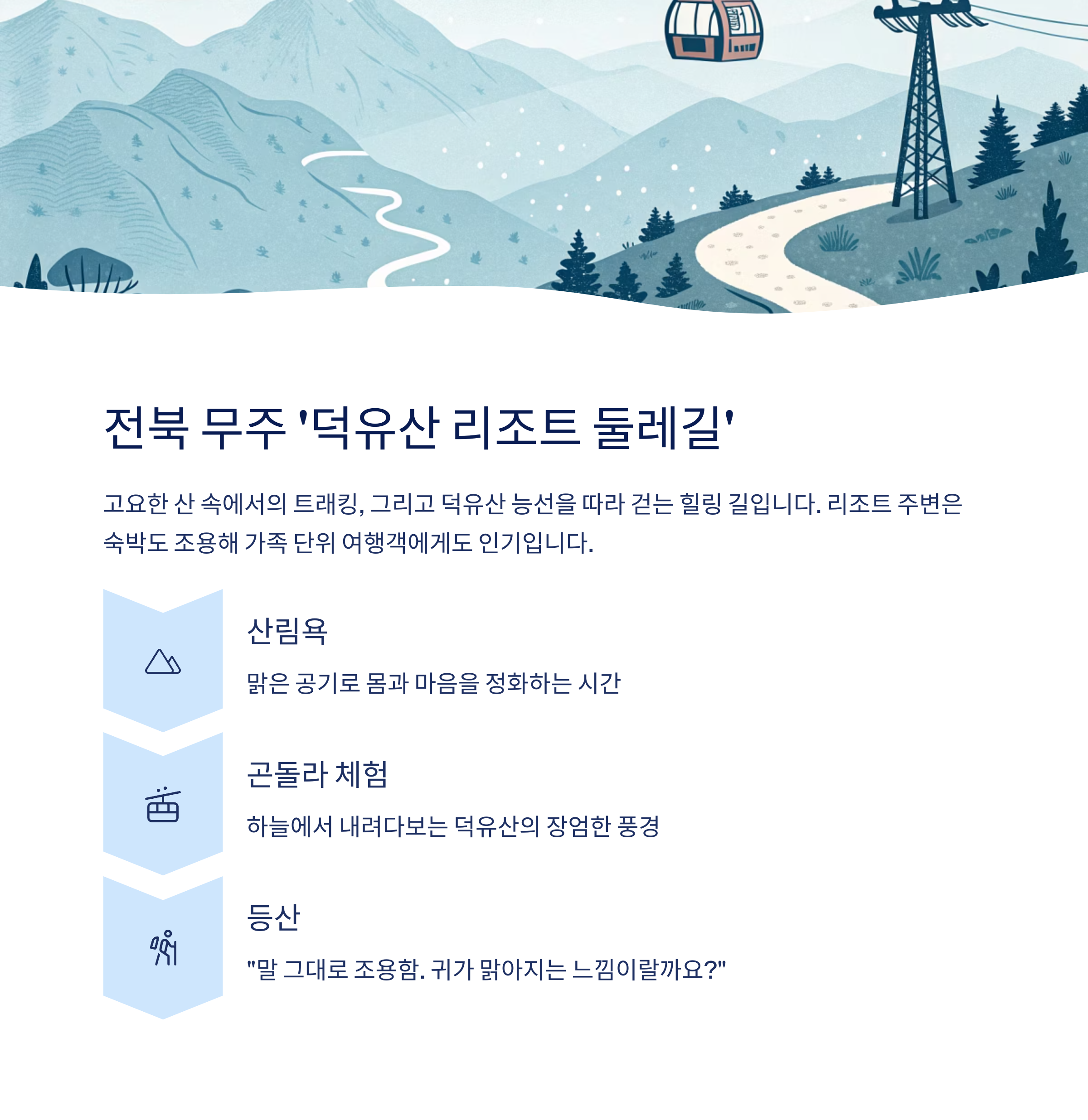 특징: 산악형 힐링 여행지