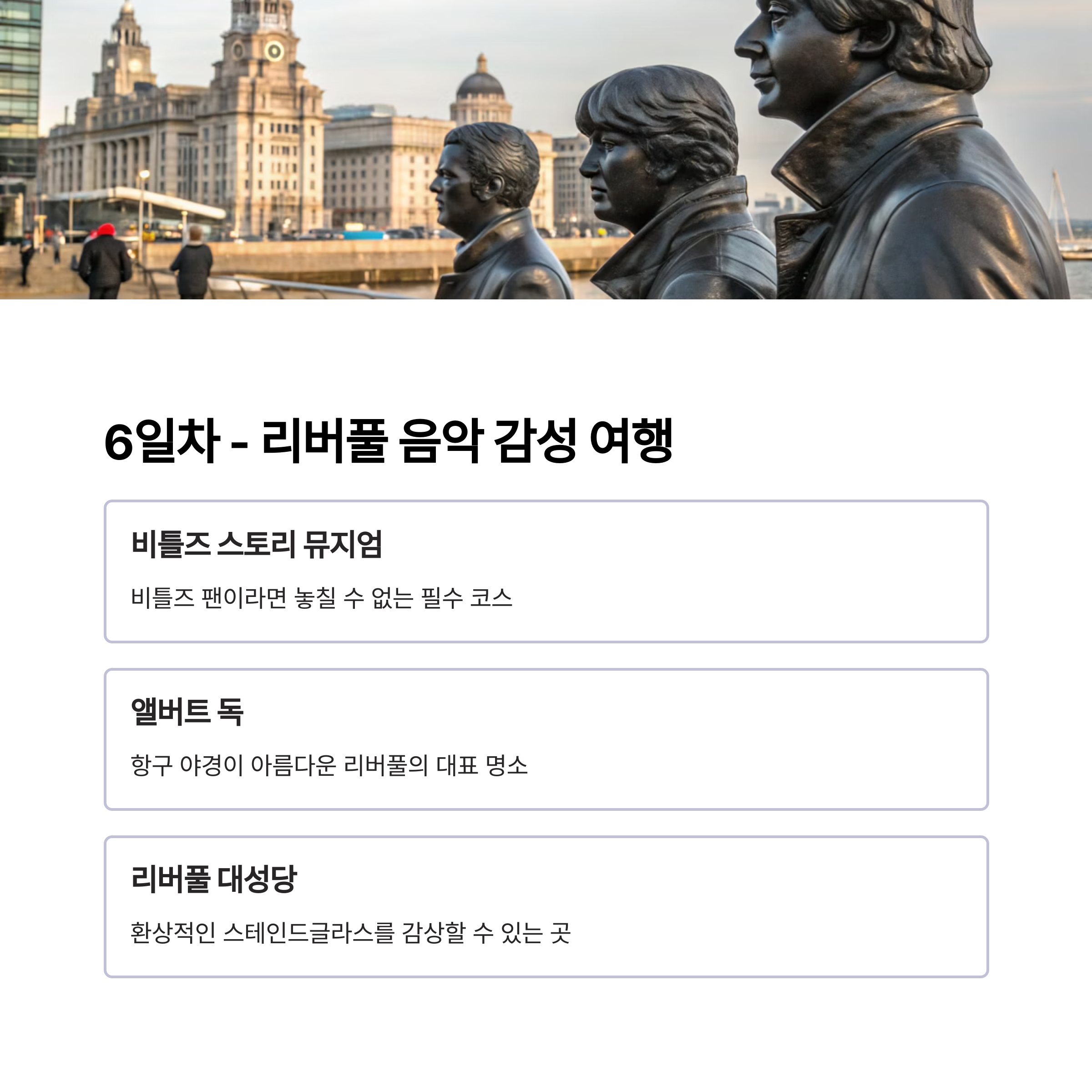 리버풀은 비틀즈의 고향이자 음악과 해양 산업이 공존하는 도시입니다.