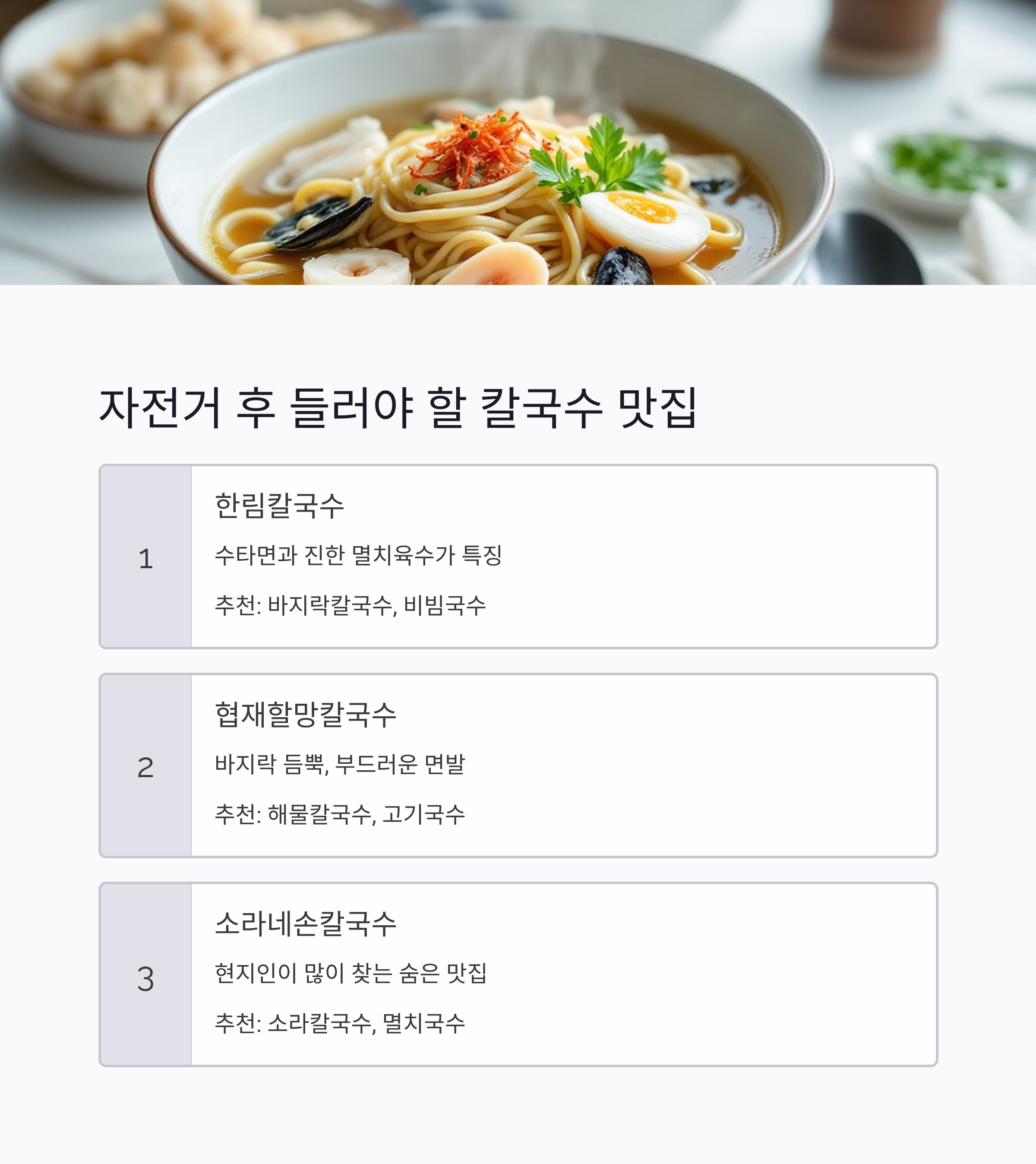 자전거 여행 후엔 한 그릇! 근처 칼국수 맛집 3곳 소개