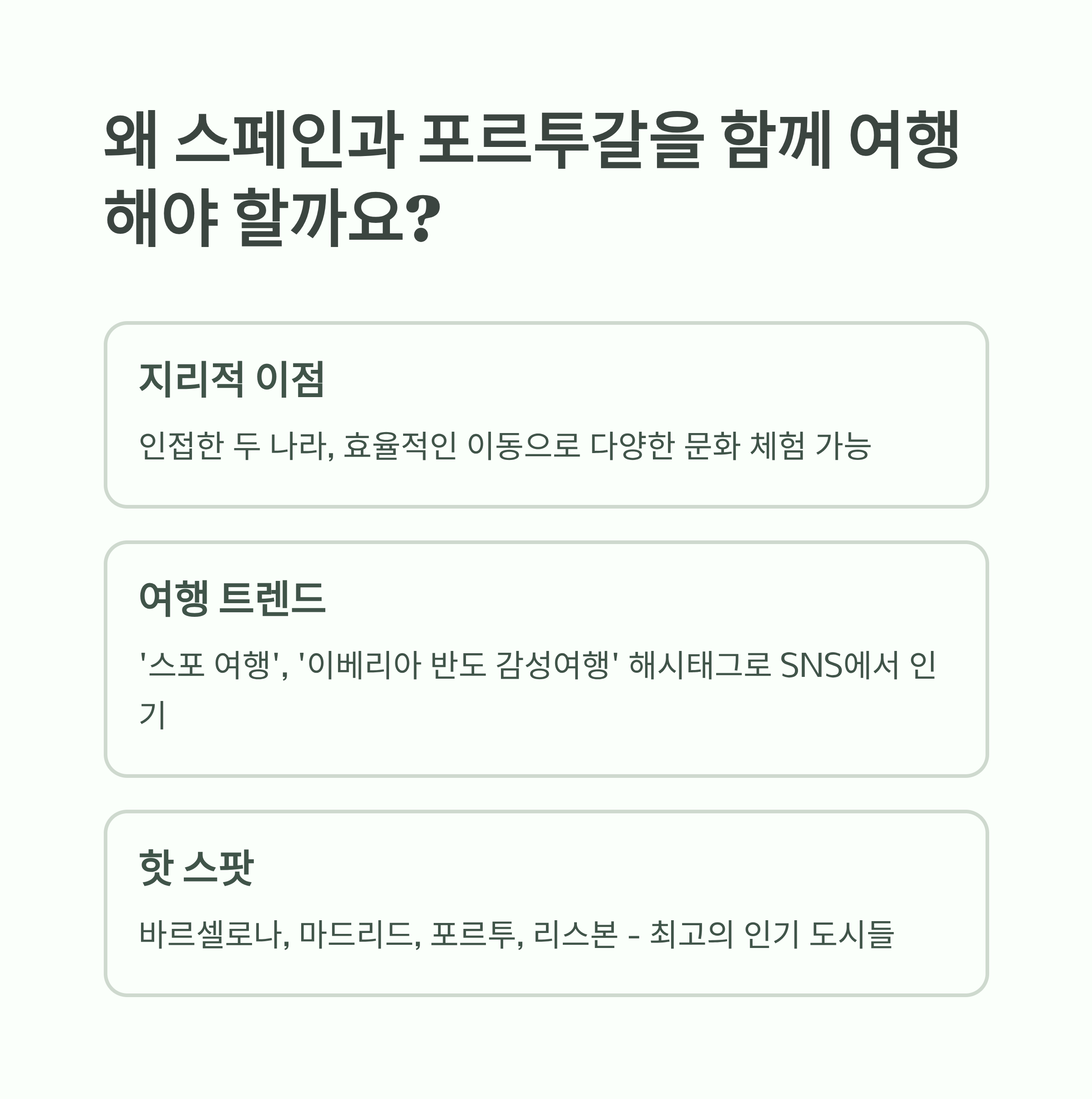 바로 스페인과 포르투갈입니다. 두 나라는 인접해 있어 이동이 용이하면서도