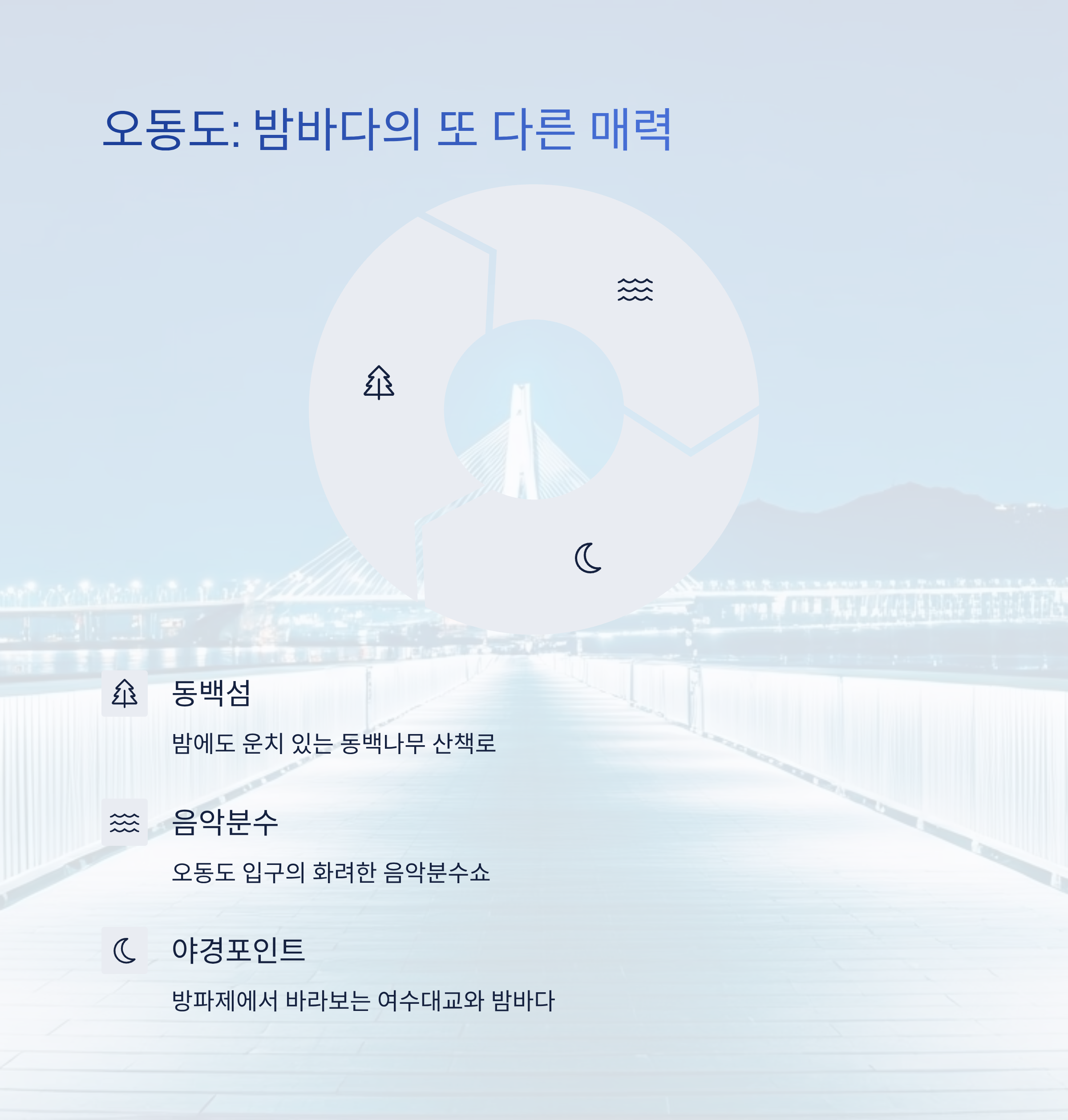 여수 밤바다 뷰를 가장 아름답게 감상할 수 있는 장소 중 하나입니다.