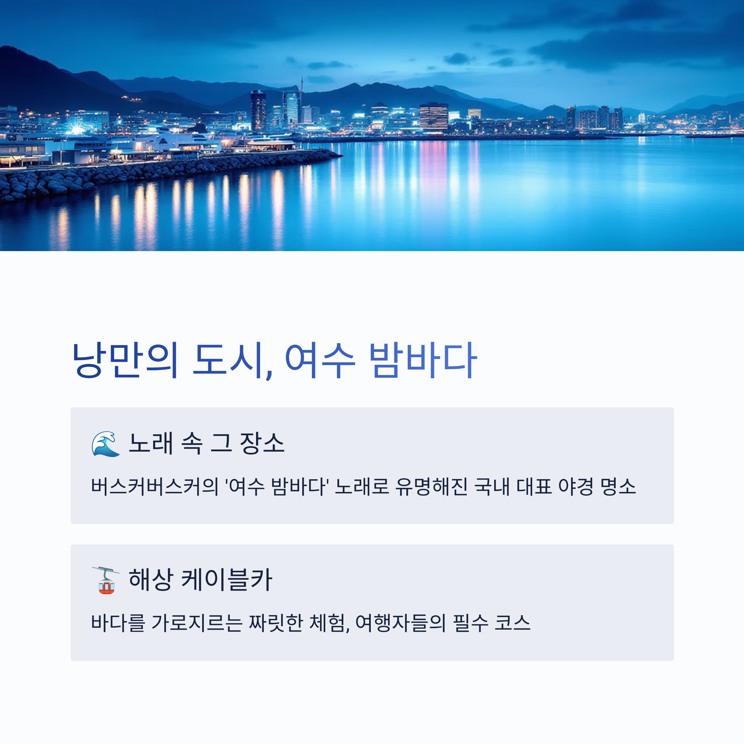 야경과 낭만 여행지로 자리매김했습니다. 특히 여수 해상 케이블카는