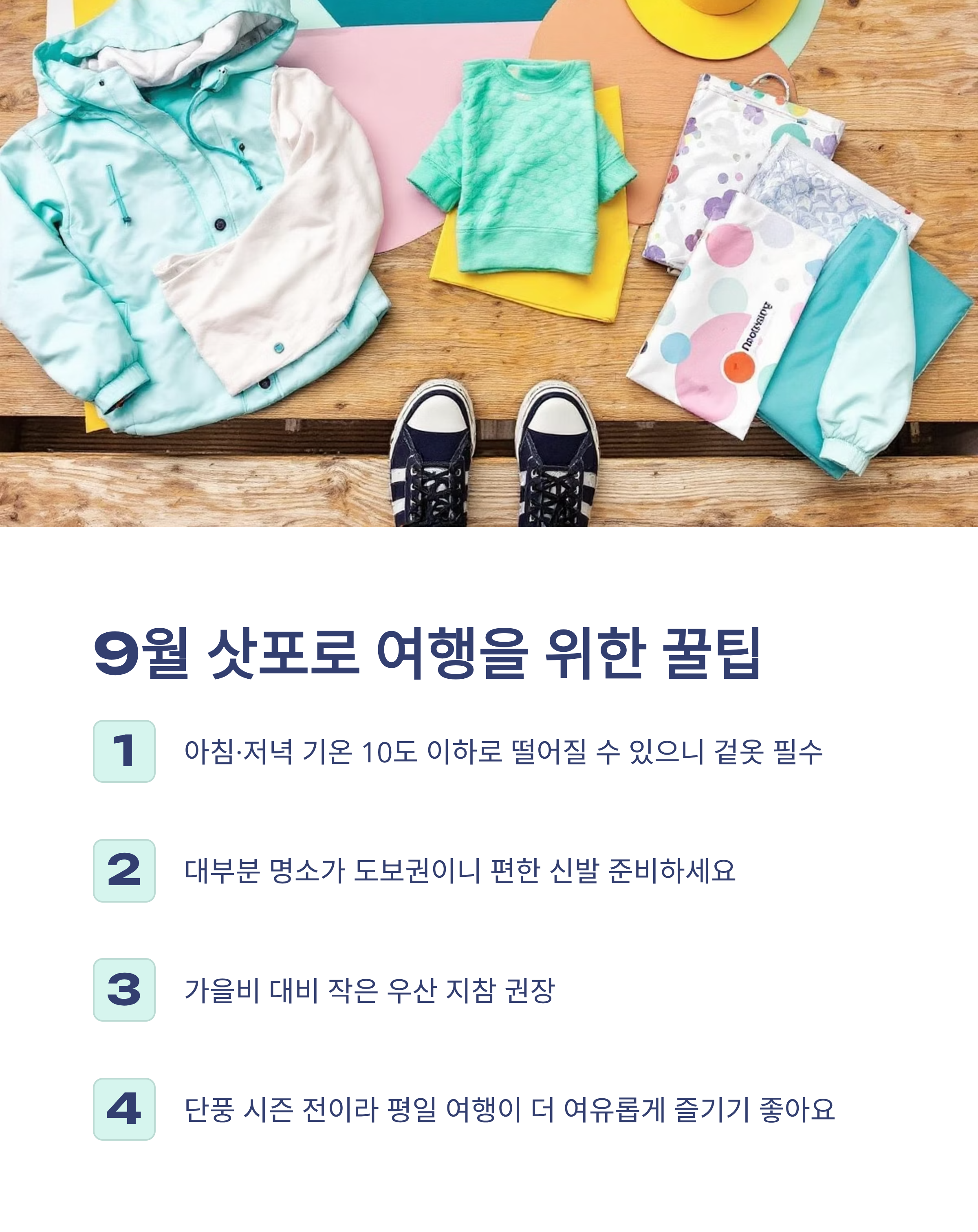 - 날씨 변화 대비: 우비나 작은 우산 지참 권장, 가을비 잦음