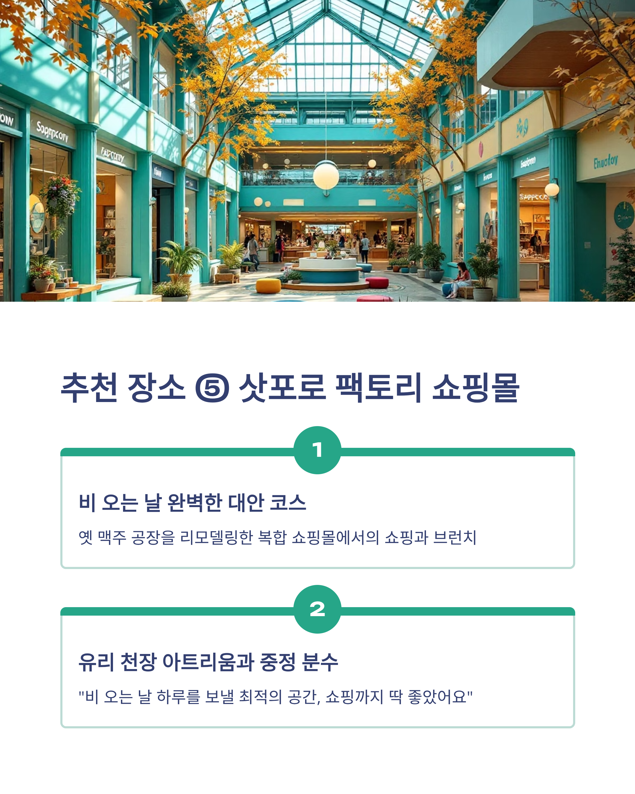 추천 장소 ⑤ 삿포로 팩토리 쇼핑몰 – 비 오는 날 완벽한 대안 코스