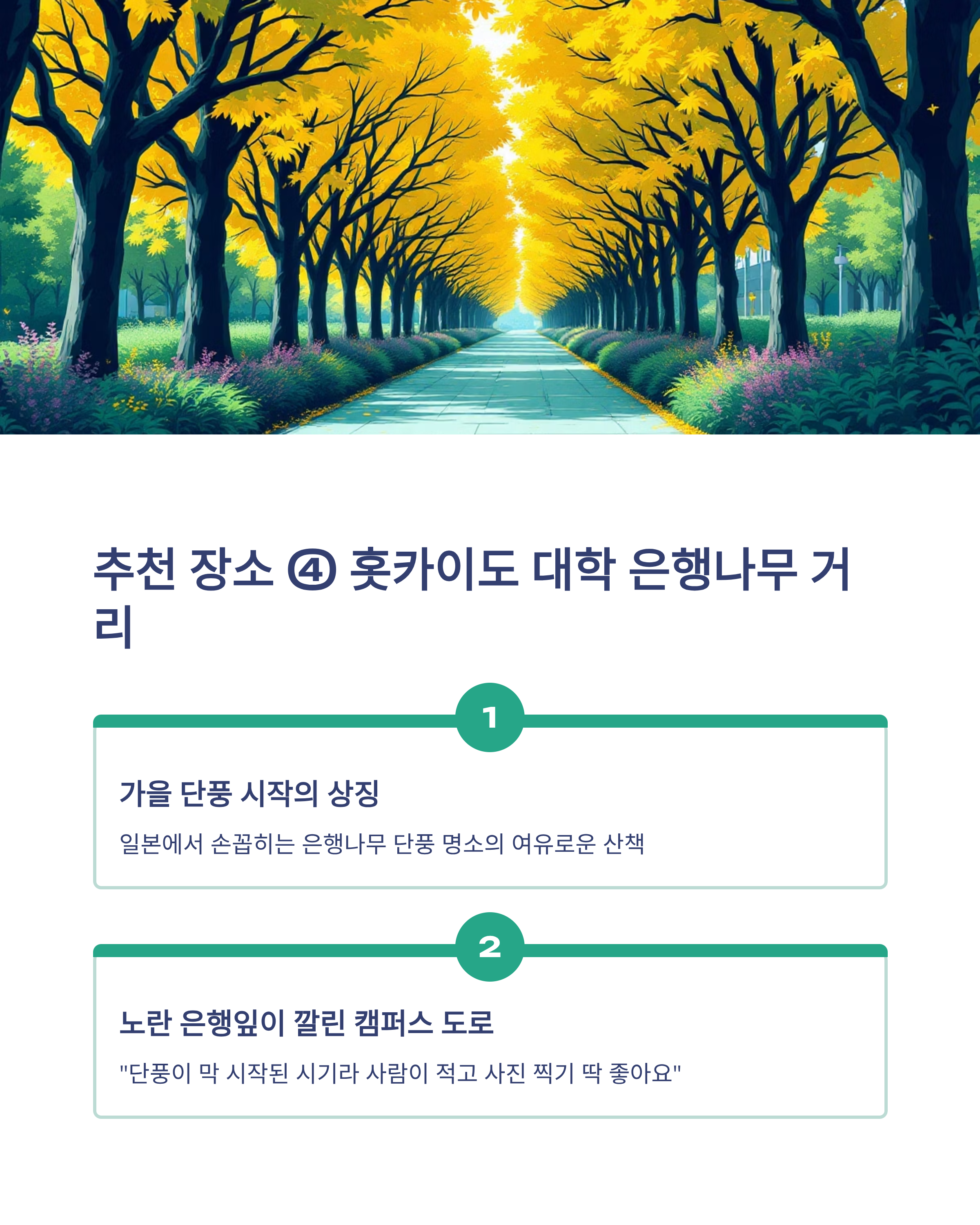 추천 장소 ④ 홋카이도 대학 은행나무 거리 – 가을 단풍 시작의 상징
