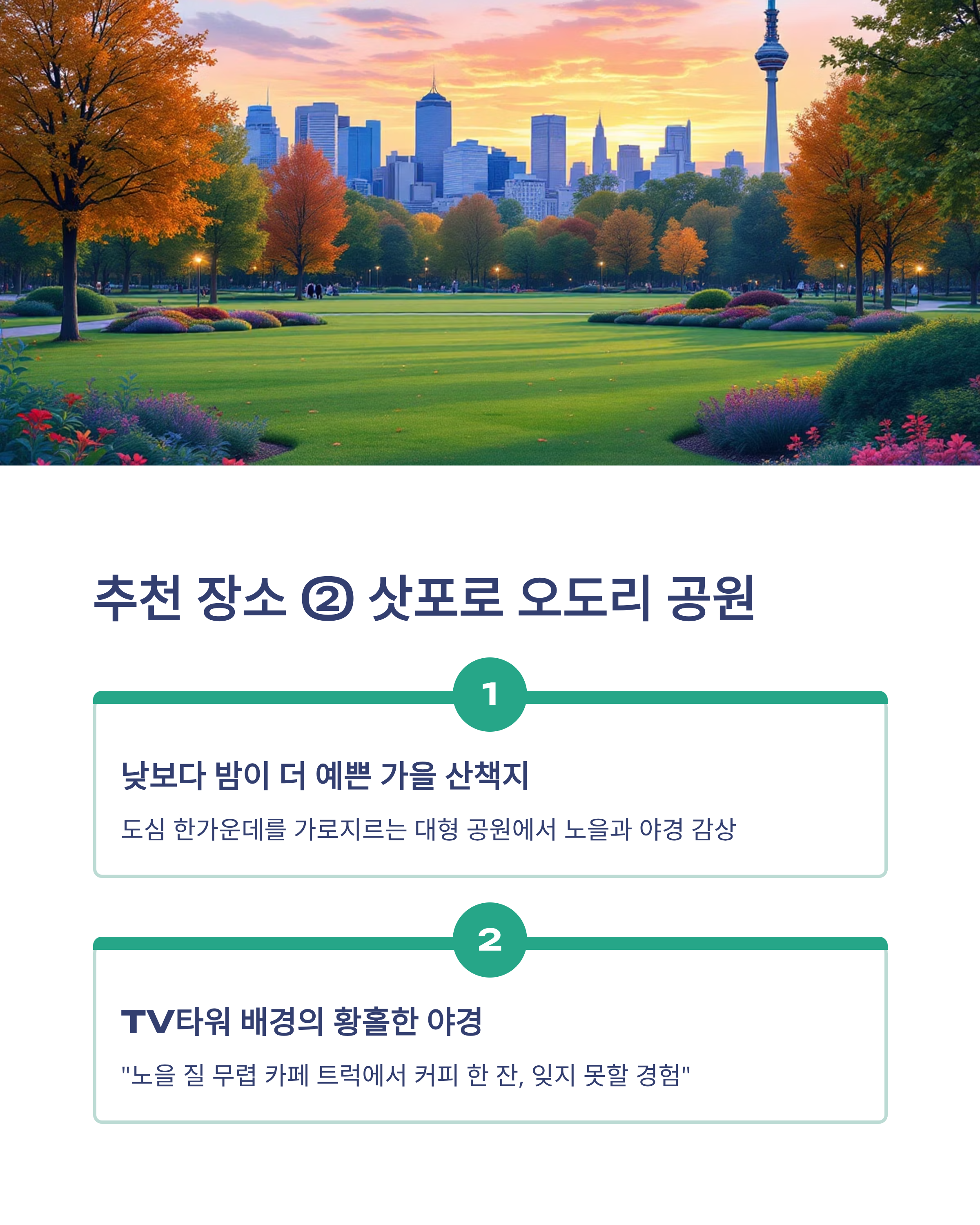추천 장소 ② 삿포로 오도리 공원 – 낮보다 밤이 더 예쁜 가을 산책지