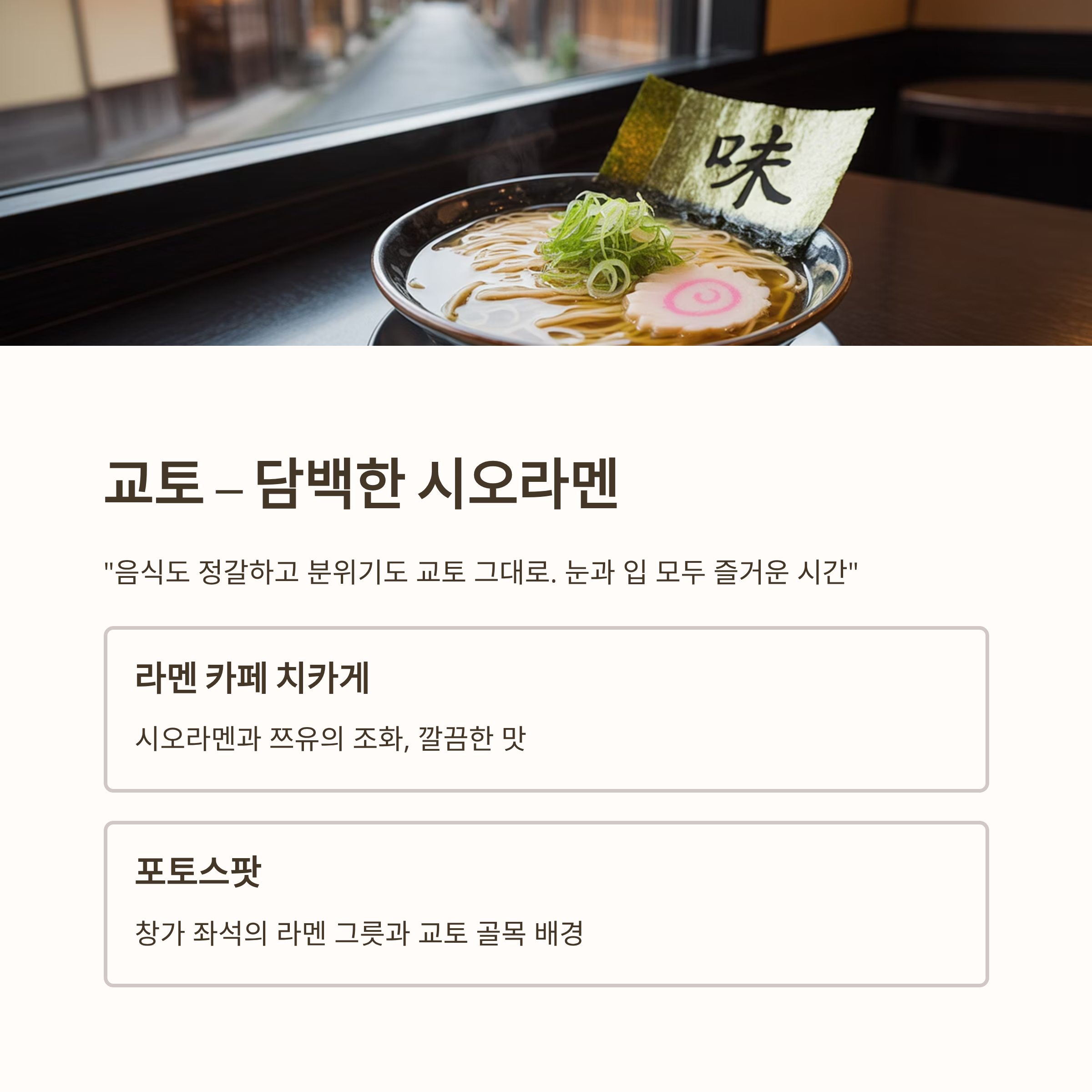 교토 – 전통 거리 속 담백한 시오라멘, ‘라멘 카페 치카게’