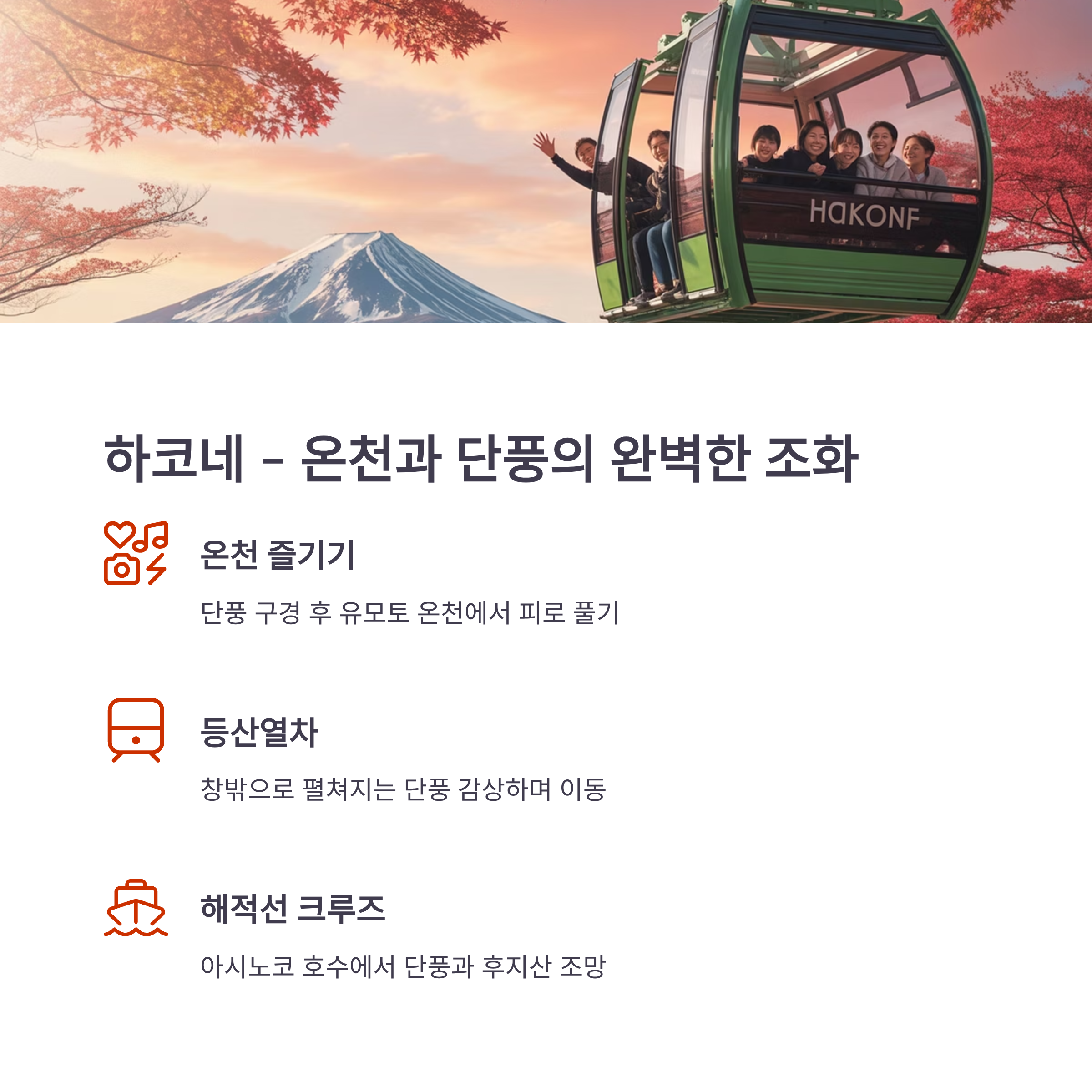 온천과 자연경관, 그리고 전통이 어우러진 하코네는 가을에 특히 더 매력적인 여행지입니다. 후지산을 배경으로 펼쳐지는 단풍 풍경은 사진으로 담기에도 최고의 장소입니다.