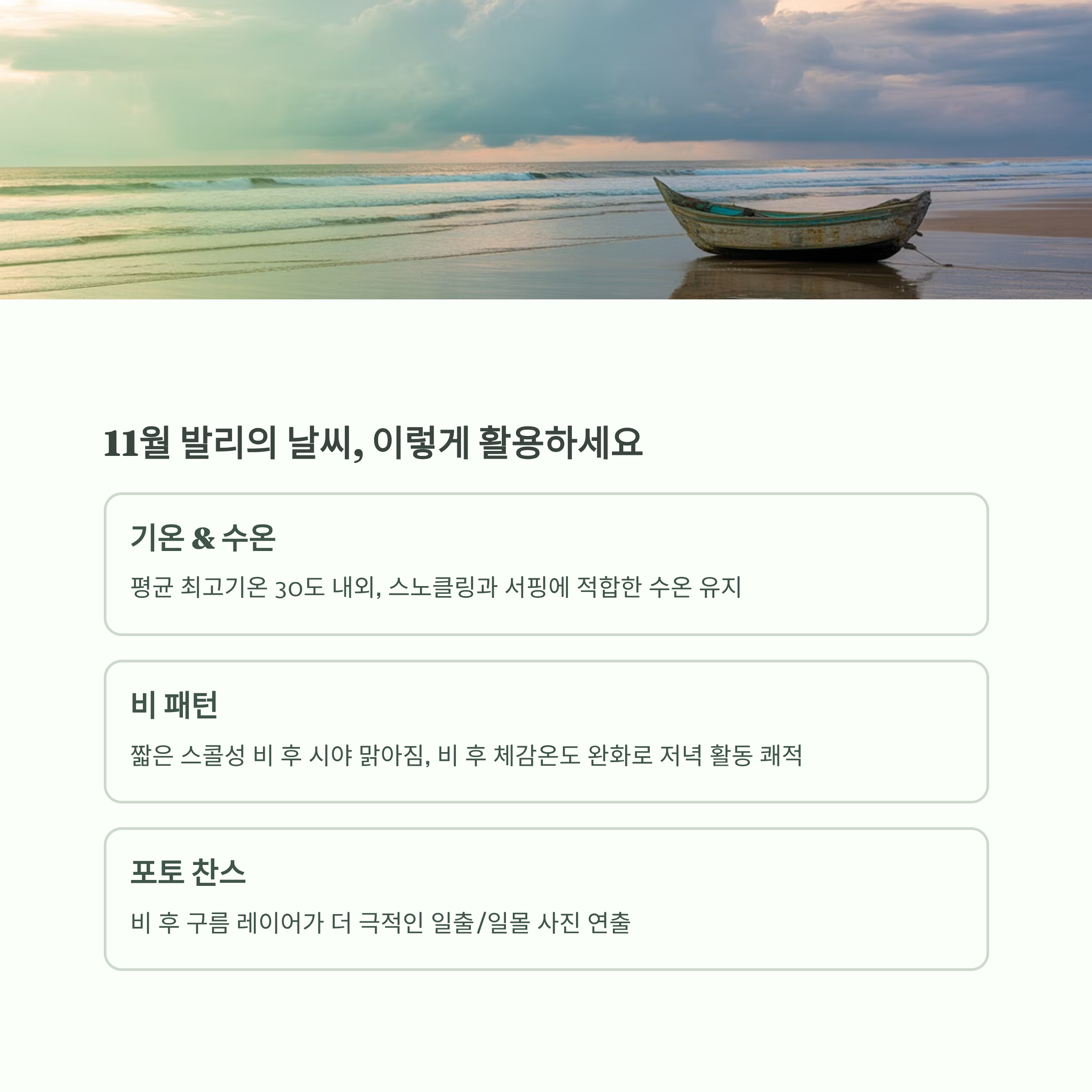 우기 초입의 꿀타이밍, 가격과 날씨, 동선까지 11월 발리의 장점을 한눈에 정리합니다