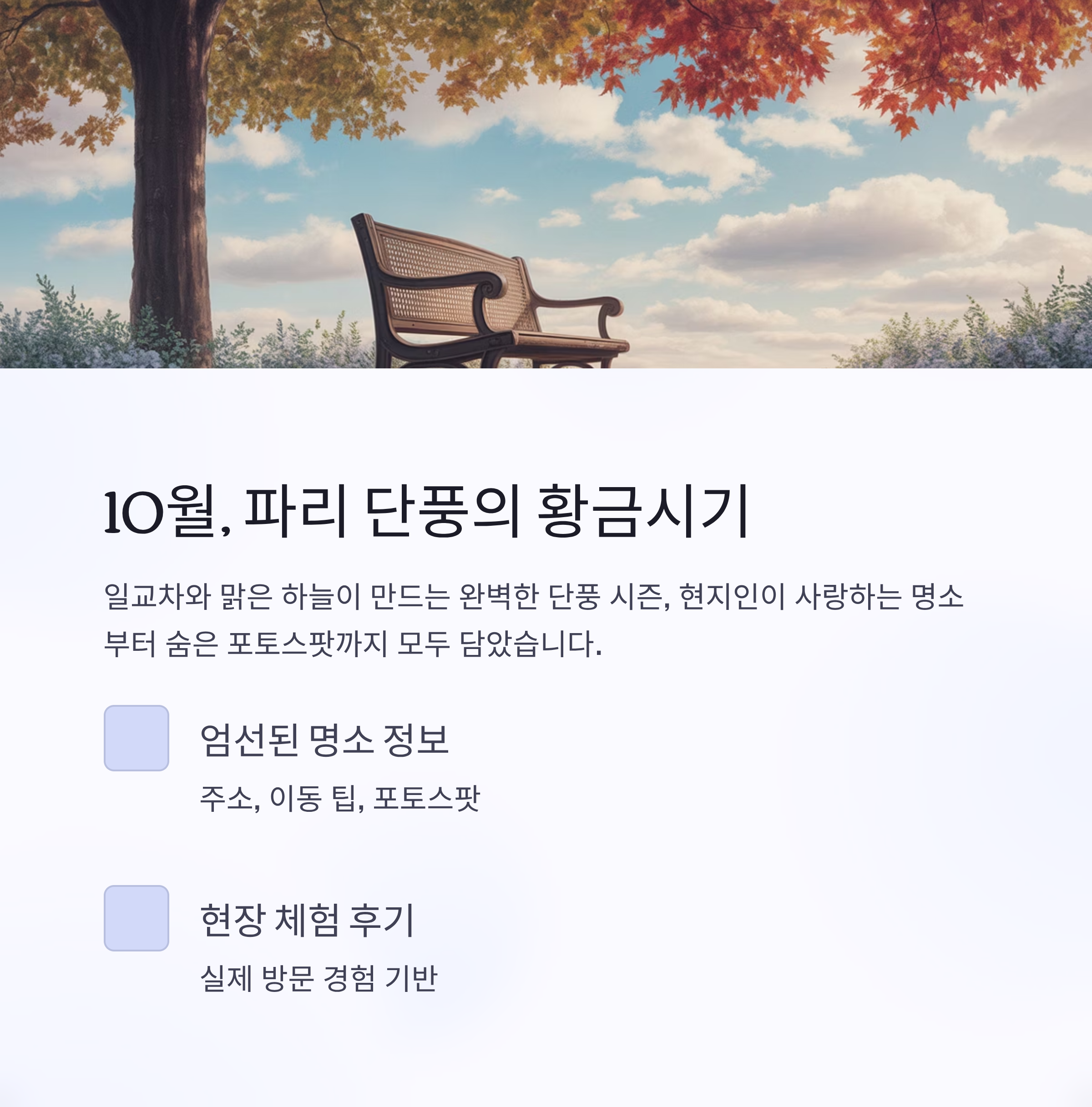 10월 파리 단풍 명소 지도부터 포토스팟까지 완벽 가이드여행 2025. 9. 1. 19:00