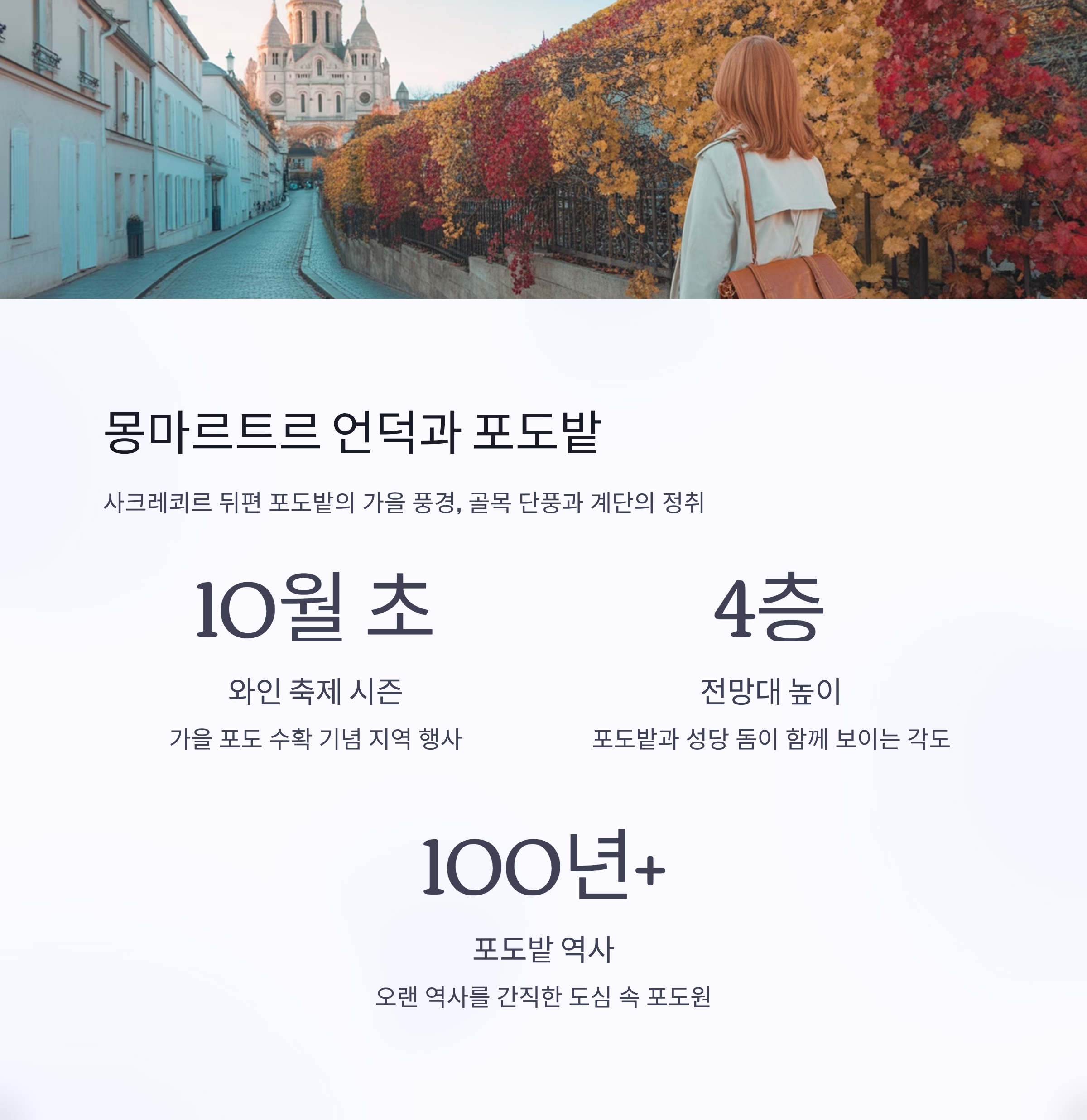 사크레쾨르 뒤편 포도밭이 가을 색으로 무르익습니다.