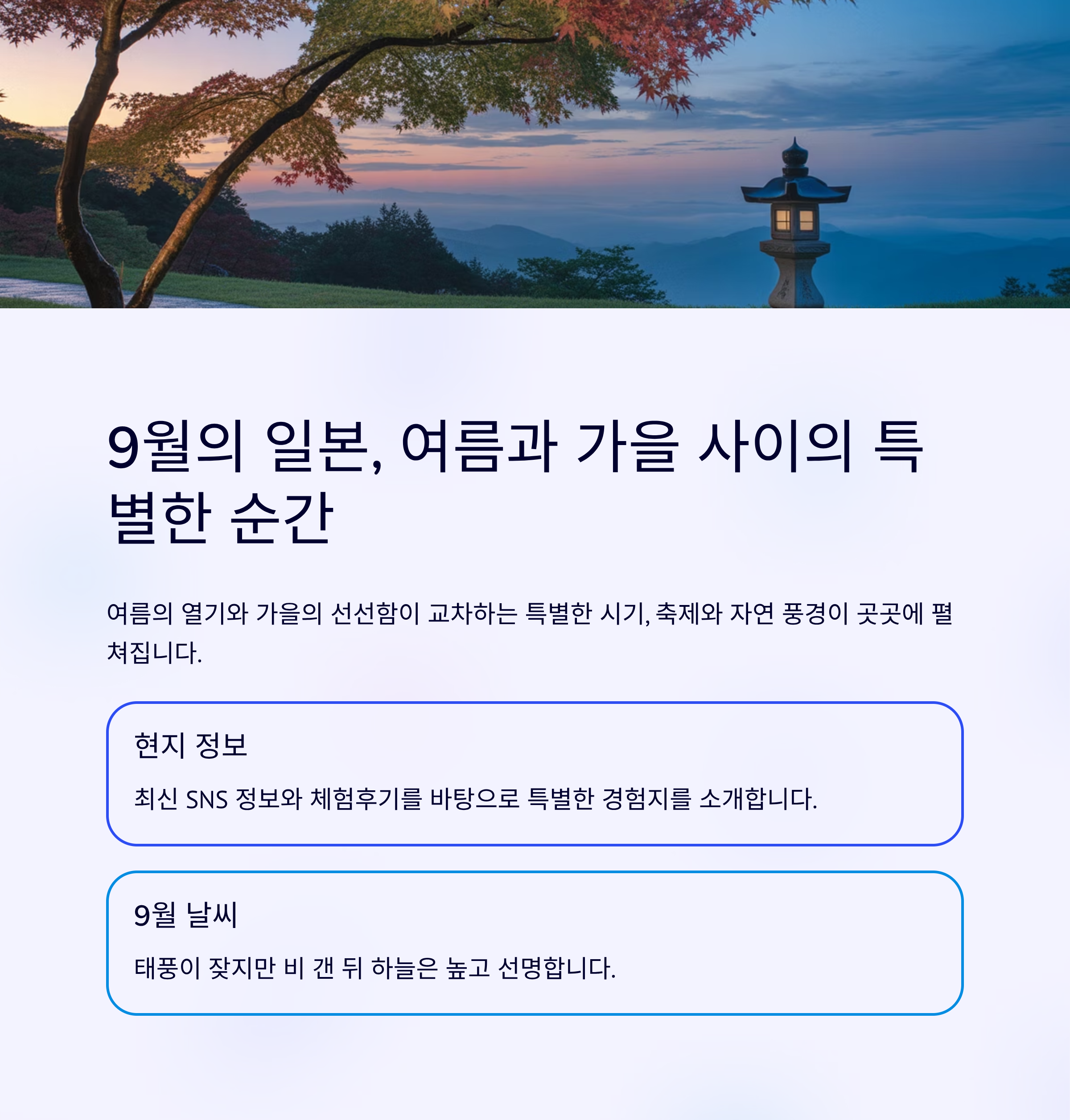9월의 일본은 여름의 열기와 가을의 선선함이 교차하는 시기입니다.