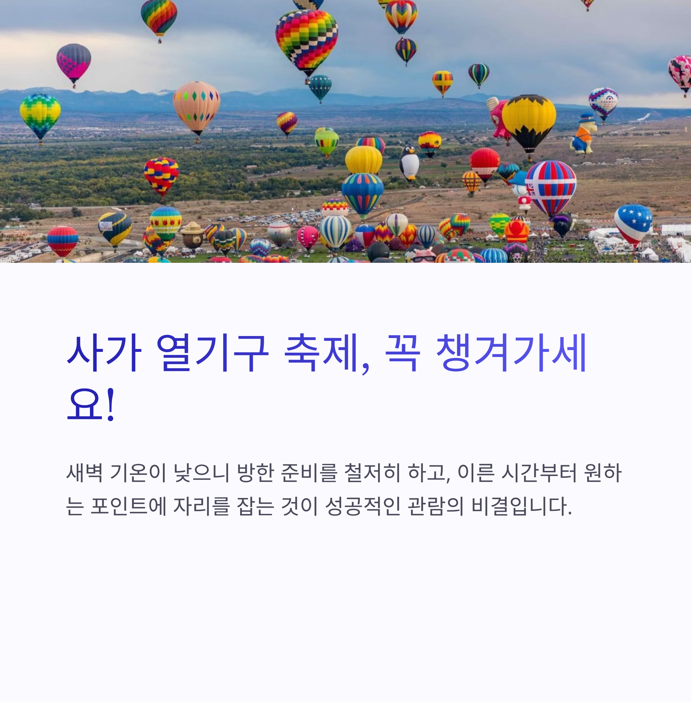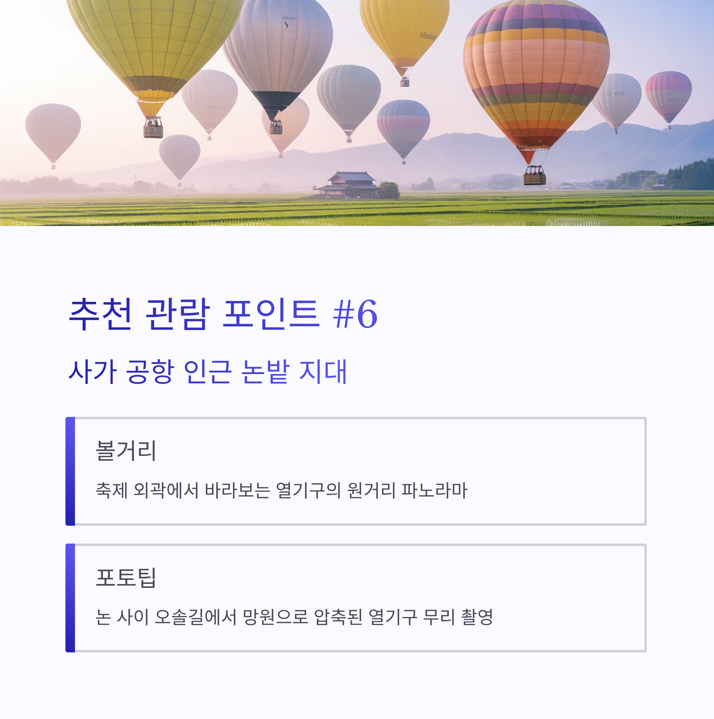 맺음말, 10/30~11/3 사가 열기구 축제 추천 일정표