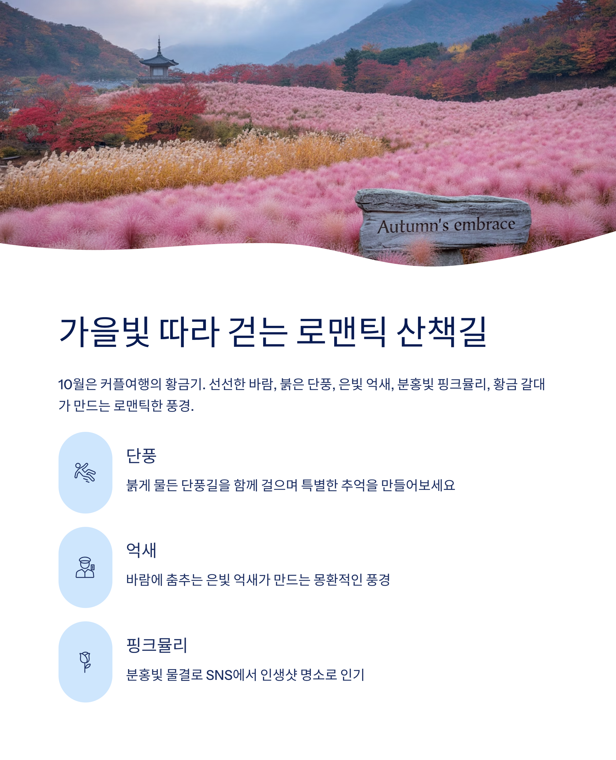 사랑하는 사람과 함께 걷는 이 계절, 풍경이 로맨스가 됩니다.#10월커플여행지 #억새명소 #핑크뮬리촬영지 #갈대밭산책 #국내가을여행 #로맨틱가을여행