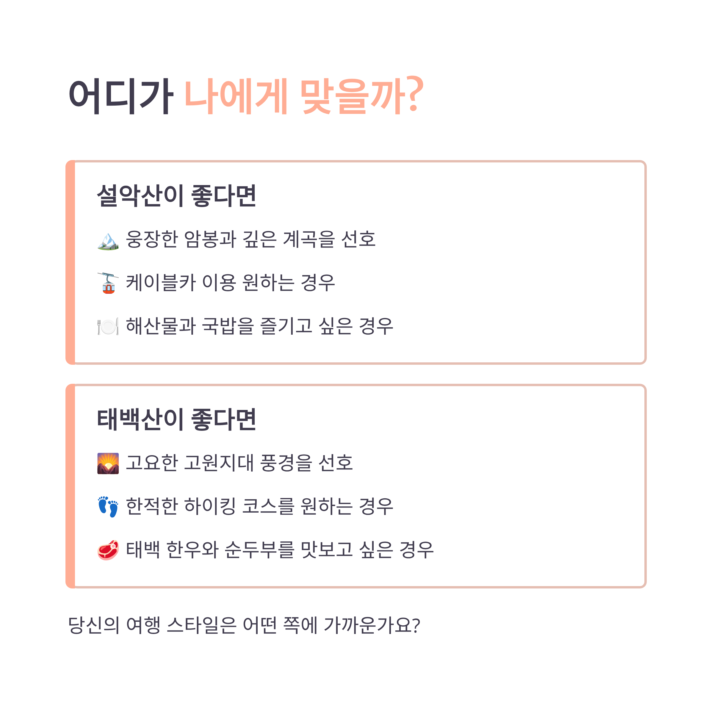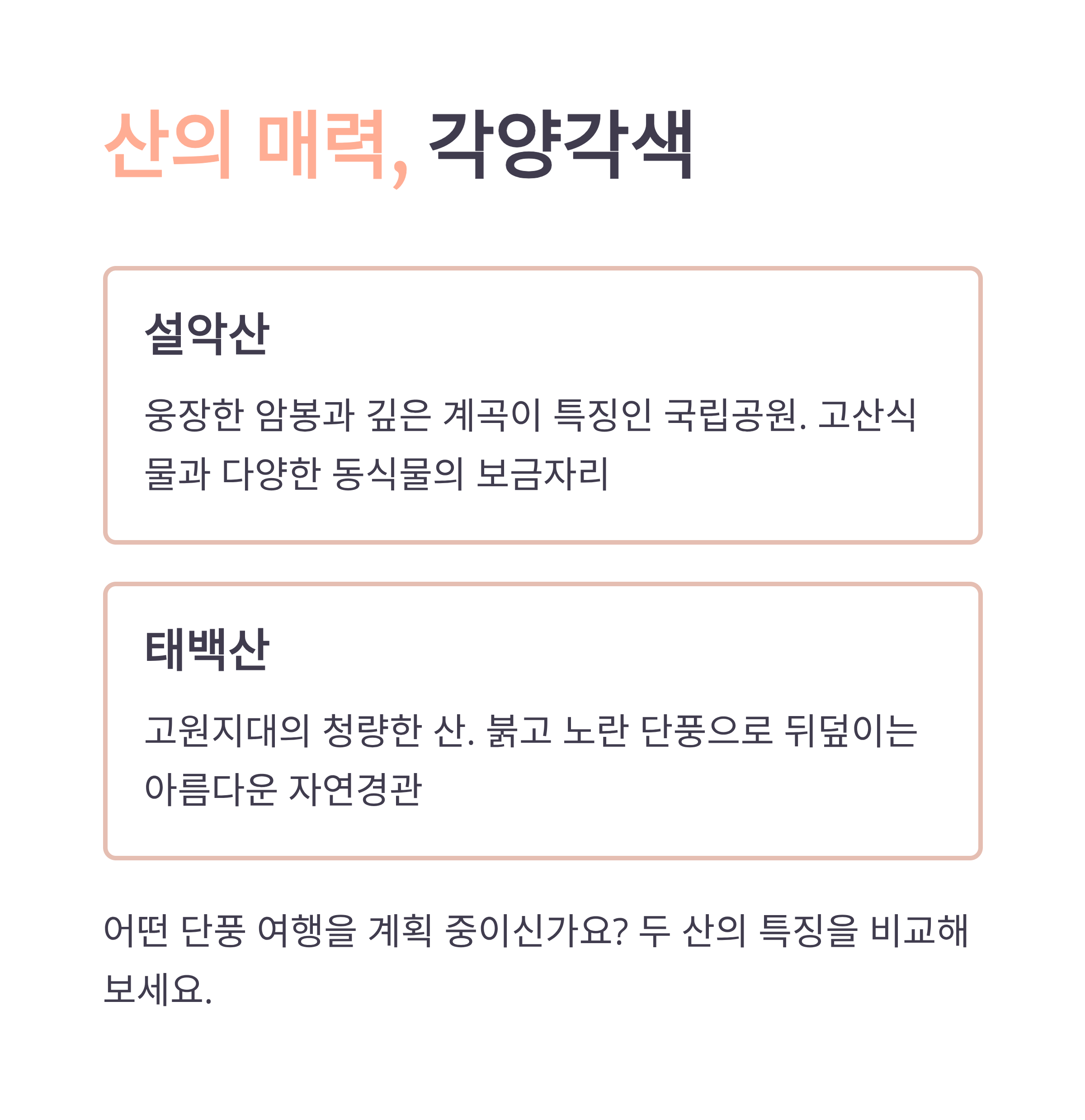 설악산 vs 태백산 비교표