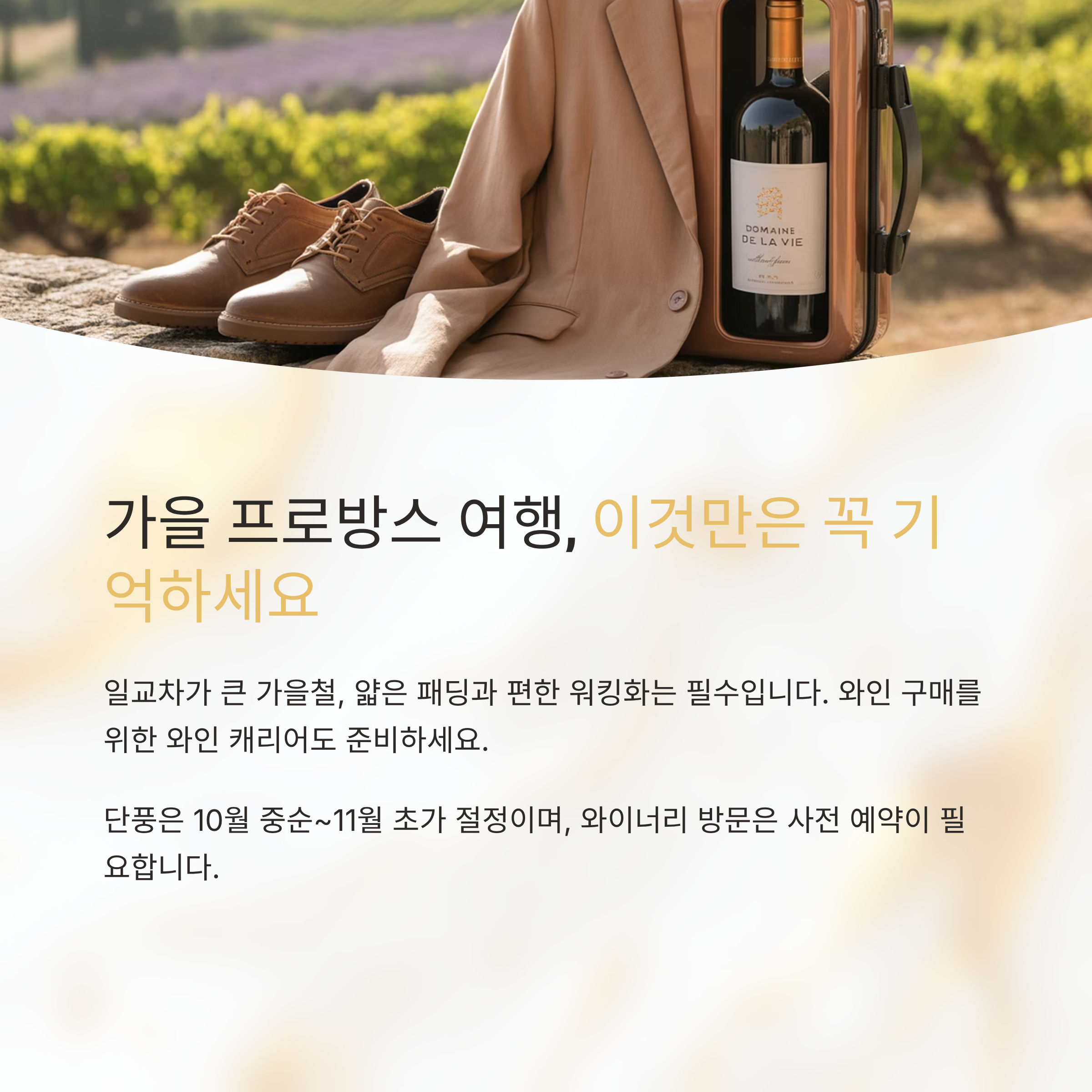 기반으로 프로방스의 가을 단풍과 와인 투어 명소, 포토스팟, 체험형 프로그램,
