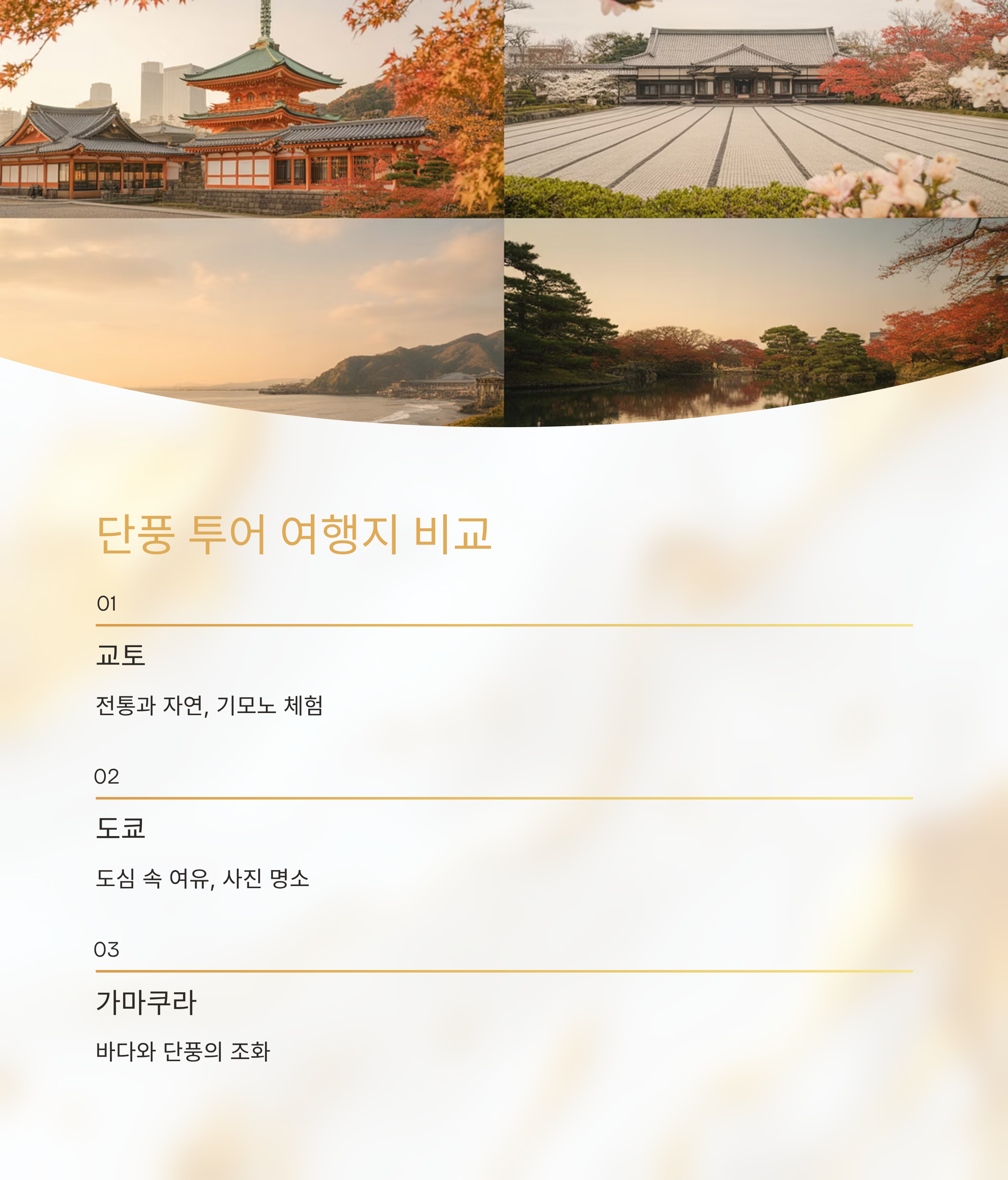 지금 떠나야 할 이유는 충분하고, 11월은 기다려주지 않습니다. 단풍, 놓치지 마세요.#일본단풍여행 #11월일본여행 #주말해외여행 #교토단풍 #도쿄단풍 #가마쿠라여행